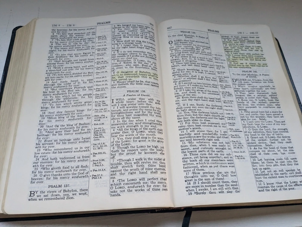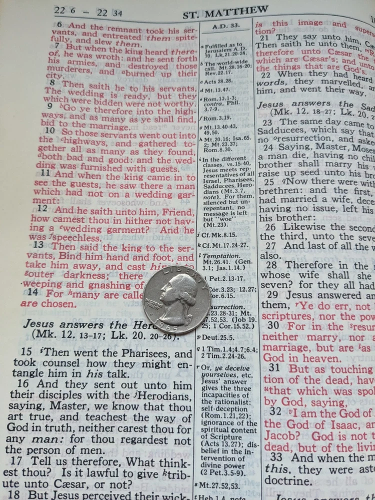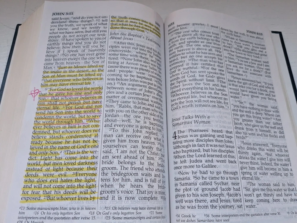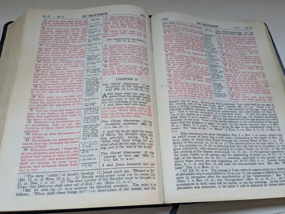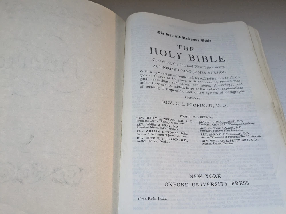 Bible measures 7 and 1/2 in x 10 in. Red letter edition. Strong binding. Flipping through the Bible I see 100 or so pages that contains yellow highlighting. Previous owner's name in front covered over with white stickers. Visit my eBay store to see other Bibles and Christian theology and songbooks. Can combine shipping with multiple purchases.