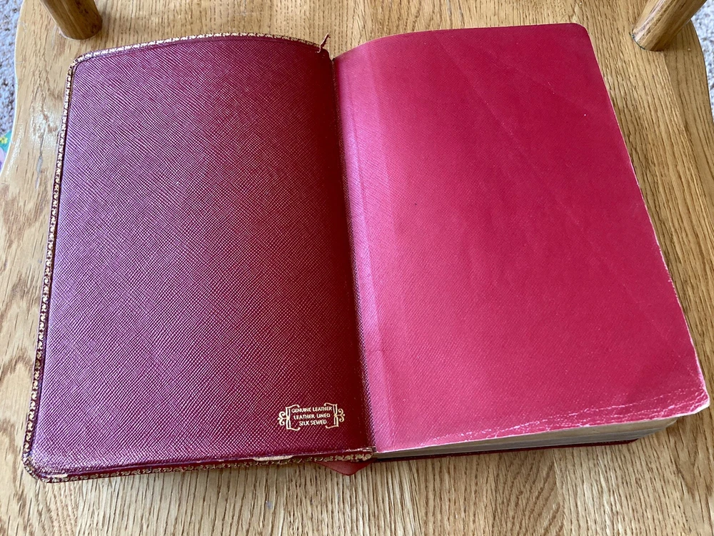 Scofield Reference Edition Bible,Oxford,Leather, Red, 1945. This is an old pre-owned bible, cover is worn in places, see photos for reference, has some handwritten notes.