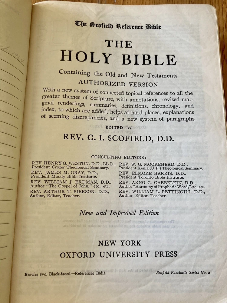 Scofield Reference Edition Bible,Oxford,Leather, Red, 1945. This is an old pre-owned bible, cover is worn in places, see photos for reference, has some handwritten notes....