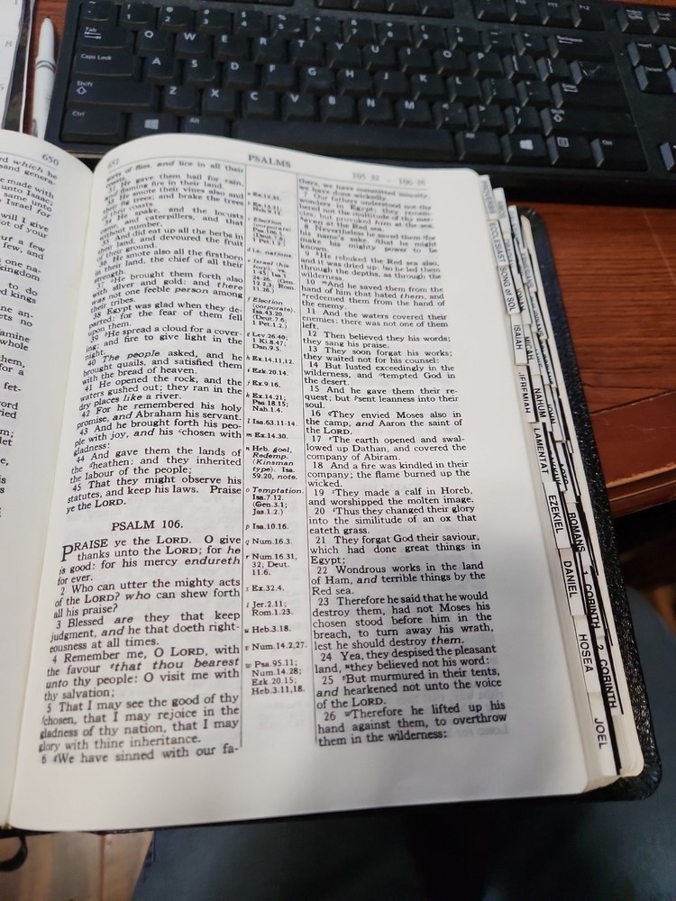 I received the Bible I had purchased today, and I couldn't be happier. It arrived fast and securely packaged for mailing. The condition (appearance) was just as described by the seller (and shown in the pics that were provided), is unmarked, and clean. Had been wanting to buy this Bible for quite some and this seller had the best price. The entire transaction went smoothly and without any surprises. I would gladly recommend this seller to anyone. Thank you, seller. Well done!