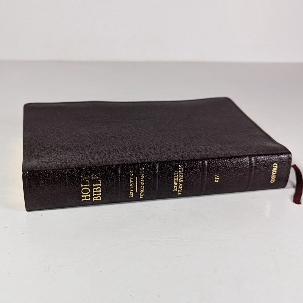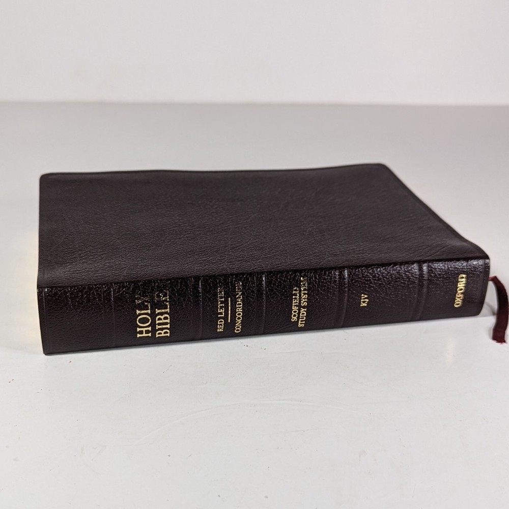 No writing or highlights. Not authentic leather. Please see all pictures for full description. If you have any questions, please ask before purchasing. I am 15 years old and working with my dad on my business . Your purchase and support is greatly appreciated! Most orders are packaged the day I receive them and ship the next day. Advertised shipping is to the contiguous 48 states only. Please message for a quote outside of the 48 states. If you purchase an item and do not pay, you will be reported. This Scofield Study Bible features a burgundy leather cover and a red letter edition with a concordance and the Scofield Study System. It includes features such as ribbon marker, thumb index, maps, and is intended for young adults, ages 9-12 and adults. The original language is English and it was published by Oxford University Press. This Bible is perfect for those interested in religion and biblical studies. It is part of the Holy Bible series and is a KJV version. The item height is 8.75” and the item width is 5.5”. This Bible is a great addition to any collection and is sure to provide a wealth of knowledge to its owner.
