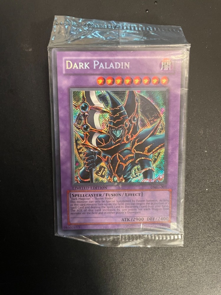 Sealed DMG-001 Dark paladin. Well taken care of. No damage to the card. Packaging has slight bends and wear marks.