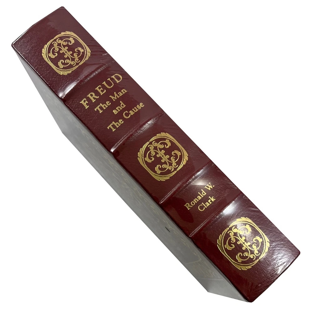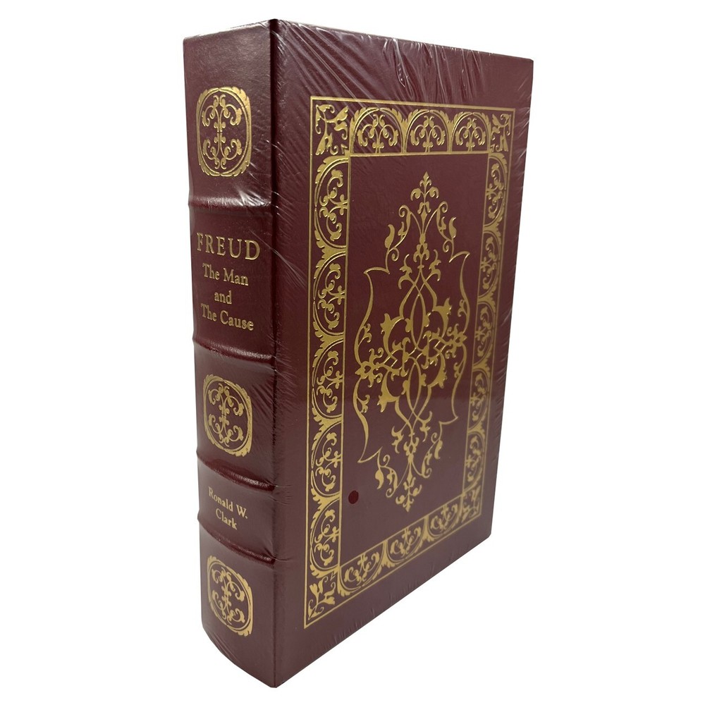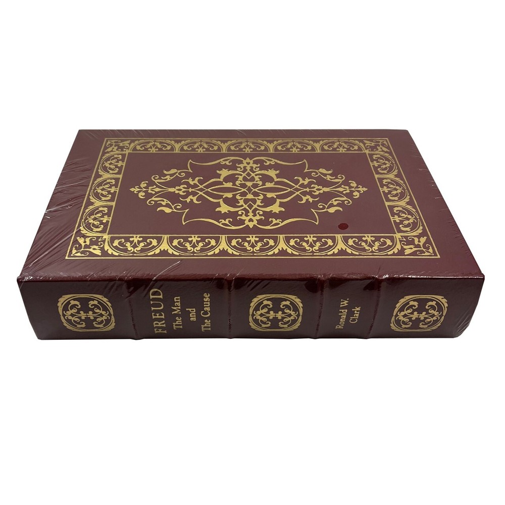 Easton Press, Norwalk CT. 1988 Ronald W. Clark "Freud: The Man and the Cause" Limited Edition. Luxuriously bound in full genuine leather with 22kt gold accents. The Library of Great Lives with original collector's notes. Sealed. About the book Ronald Clark has written some excellent biographies (e.g., Einstein: The Life and Times; The Life of Bertrand Russell). While there are more recent biographies of Freud, more extensive biographies, and more "scandalous" biographies, I thought this was a balanced, reasonably comprehensive portrait of the man. Clark notes that "Freud never doubted that he had been chosen for great things, that his mantle of leadership was tailor-made, and that while Moses had been picked to lead his people into the promised land, Sigmund Freud had a comparable destiny ahead of him." "If there was a likelihood that he would not be the first in the field, then Freud would switch to something else ...it was nevertheless an early indication of the determination to make his mark." For his early promotion of cocaine as a local anesthetic, "He defended himself as best he could, declaring that he had never advised injection of cocaine but only the taking of doses orally--at best a Freudian slip which was repeated later when he omitted from his bibliography the damaging lecture to the Psychiatric Association. He had, in fact, been unlucky. When he set up his practice in 1886 he at first tended to be remembered in some medical circles not as the doctor who had discovered the anesthetizing value of cocaine but as the man who had let loose the third scourge" (the other two being alcohol, and morphine). At one point in 1885 Freud said that he had "destroyed all my notes of the past fourteen years ... I couldn't have matured or died without worrying about who would get hold of those old papers." After he gave up hypnotism, Freud "decided to start from the assumption that my patients knew everything that was of any pathogenic significance and that it was only a question of obliging them to communicate it." Clark observes, "Yet though the unconscious had a long history, no one before Freud had pronounced so positively that it was the undiscovered country into which man tried to banish those memories he wished to ignore."; "Many of his patients were women, many were to some degree mentally unstable and many appear---from the scanty evidence available---to have been sexually repressed."; "it is interesting that psychoanalysis ... should have come into being during the treatment of a relatively small number of unrepresentative neurotic patients drawn most ... from an educated and literate social class." Freud once admitted that "I am not basically interested in therapy and I usually find that I am engaged---in any particular case---with the theoretical problems with which I happen to be interested at the time." Clark details the origin of theories such as the Oedipus Complex, in ways that are very illuminating. Freud wryly observed in 1893, "The sexual business attracts people; they all go away impressed and convinced, after exclaiming, `No one has ever asked me that before!'" Clark notes that Freud's Jewishness was important to him, and that he "grew up with a feeling for his race second only in importance to the cause of psychoanalysis. 'My parents were Jews,' he always stressed. 'and I have remained a Jew myself.'" Clark is not afraid to make candid assessments of Freud: "it is necessary to ask how successful he was, not as an investigator of the way in which the mind worked but as a doctor curing sick patients. The evidence is remarkably slight." Late in life, Freud admitted that "one ought not to be surprised if it should turn out in the end that the difference between a person who has not been analyzed and the behavior of a person after he has been analyzed is not so thoroughgoing as we aim at making it..." In 1937, to a friend who encouraged him to leave Vienna now that the Nazis had come to power, he said, "I am not afraid of them. Help me rather to combat my true enemy: Religon, the Roman Catholic Church." About the author Ronald William Clark (2 November 1916 9 March 1987) was a British author of biography, fiction and non-fiction. Born in London, Clark was educated King's College School. In 1933, he embarked on a career as a journalist, and served as a war correspondent during the Second World War after being turned down for military service on medical grounds. As a war correspondent, Clark landed on Juno Beach with the Canadians on D-Day. He followed the war until the end, and remained in Germany to report on the major War Crimes trials. Features Includes all the classic Easton Press qualities: * Premium Leather * Silk Moire Endleaves * Distinctive Cover Design * Hubbed Spine, Accented in Real 22KT Gold * Satin Ribbon Page Marker * Gilded Page Edges * Long-lasting, High Quality Acid-neutral Paper * Smyth-sewn Pages for Strength and Durability * Beautiful Illustrations Sigmund Freud Sigmund Freud ( born Sigismund Schlomo Freud; 6 May 1856 – 23 September 1939) was an Austrian neurologist and the founder of psychoanalysis, a clinical method for evaluating and treating pathologies in the psyche through dialogue between a patient and a psychoanalyst. Freud was born to Galician Jewish parents in the Moravian town of Freiberg, in the Austrian Empire. He qualified as a doctor of medicine in 1881 at the University of Vienna. Upon completing his habilitation in 1885, he was appointed a docent in neuropathology and became an affiliated professor in 1902. Freud lived and worked in Vienna, having set up his clinical practice there in 1886. In 1938, Freud left Austria to escape Nazi persecution. He died in exile in the United Kingdom in 1939. In founding psychoanalysis, Freud developed therapeutic techniques such as the use of free association and discovered transference, establishing its central role in the analytic process. Freud's redefinition of sexuality to include its infantile f