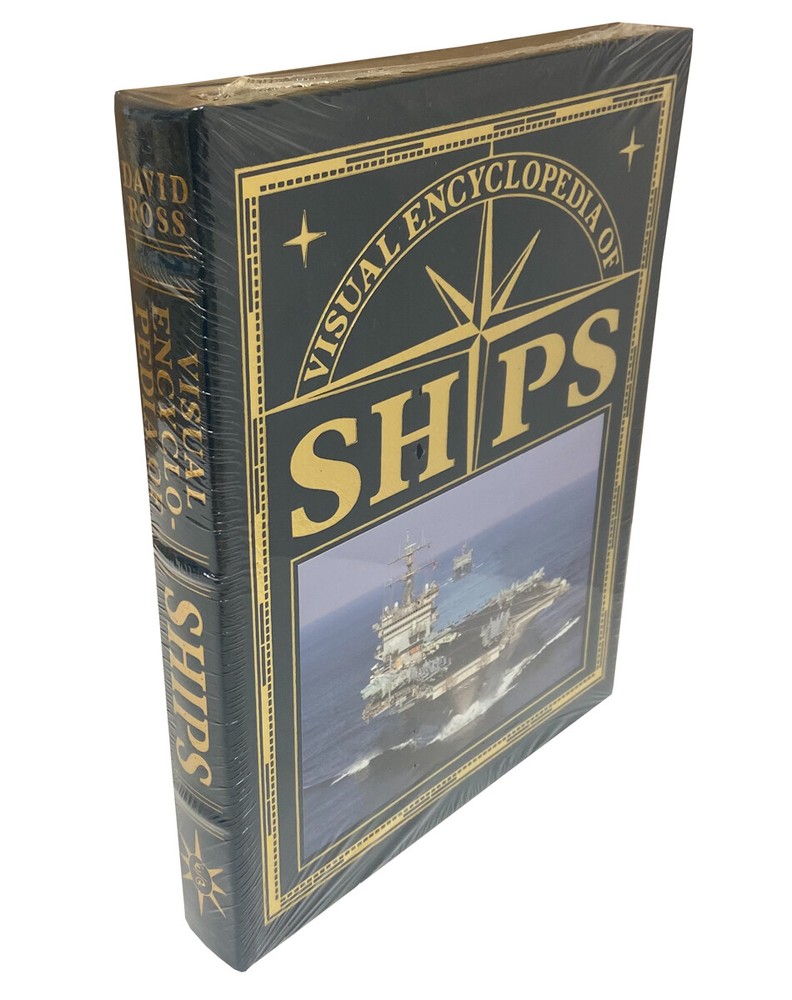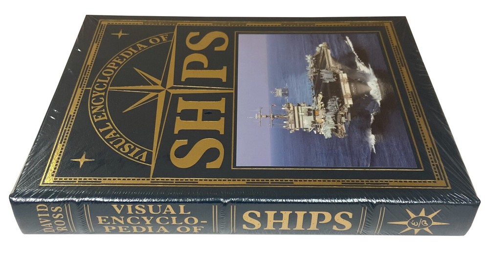 A Deluxe Leather Bound Limited Edition Sealed without any flaws. Leather-bound Easton Press . David Ross. "SHIPS: Visual Encyclopedia" Deluxe Limited edition. Full genuine leather with 22kt gold accents. As New, still sealed in the original shrink-wrap. Photos of actual item. From the dawn of civilization, man has held a fascination with the sea and over the centuries has built myriad ships and sailing craft for an equally diverse range of purposes. Ships: Visual Encyclopedia provides a fascinating at-a-glance guide to more than 1200 of the most important ships from the earliest times to the present day. From the Viking longship through the 16th century galleon to the super carriers and nuclear submarines of the 21st century, Ships: Visual Encyclopedia includes every conceivable type of ship in which man has gone to sea. As well as warships from every century, this book also examines those vessels that have explored the globe, conducted trade, and afforded great adventure, luxury and entertainment. From the smallest coastal traders up to the vast oil tankers of today, from the graceful clippers of the 19th century to the modern passenger liners, Ships: Visual Encyclopedia is the comprehensive guide to all the world’s ships, both military and civilian. Each ship is illustrated with a profile illustration, accompanied by brief details and specifications, and vessels are arranged chronologically and by use to allow easy comparison. Timelines of design and development are also provided on many pages where appropriate, giving a sense of the history of each type of ship. With 1200 outstanding color illustrations, Ships: Visual Encyclopedia is an essential reference book for maritime and ship enthusiasts. About the Author David Ross specialises in maritime and railway history and has written and contributed to numerous books on these subjects. His most recent books are Ships Visual Encyclopedia, The Essential Naval Identification Guide: Submarines 1914-Present, Great Warships and The World's Greatest Battleships. Includes all the classic Easton Press qualities: * Premium Leather * Silk Moire Endleaves * Distinctive Cover Design * Hubbed Spine, Accented in Real 22KT Gold * Satin Ribbon Page Marker * Gilded Page Edges * Long-lasting, High Quality Acid-neutral Paper * Smyth-sewn Pages for Strength and Durability * Beautiful Illustrations
