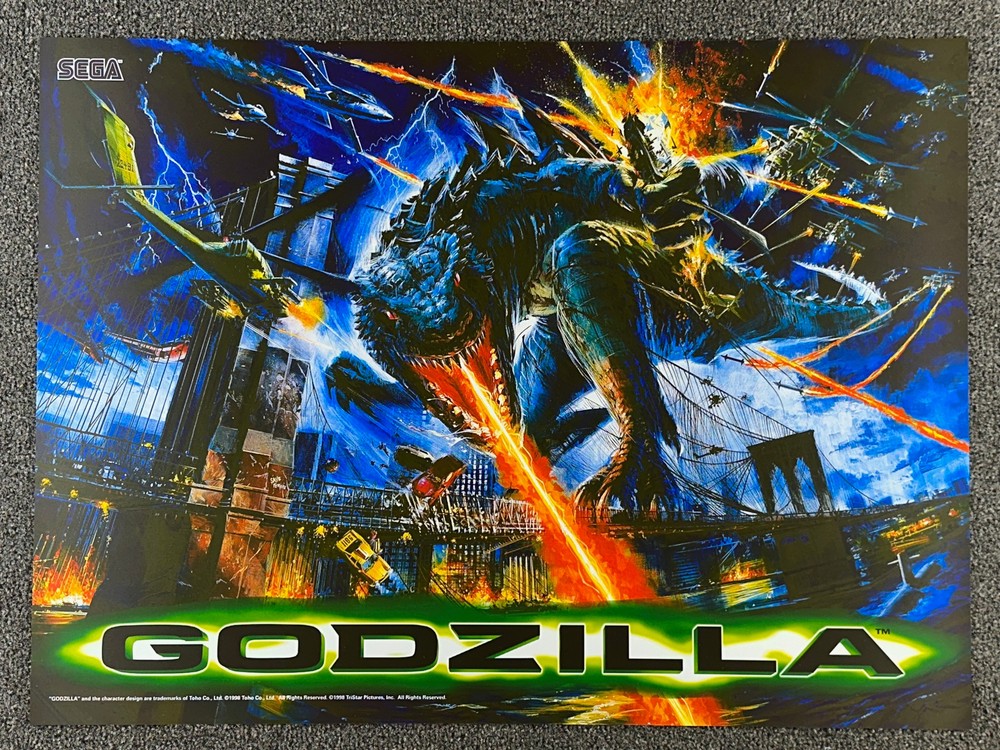 Sega Godzilla Pinball Machine Game Translite ORIGINAL NOS Good condition NOS pinball translite. Good shape, but not perfect, see pics, could have minor surface imperfections from age or shelf wear. Sold as is. Email me with questions. Shipping for domestic US via USPS. International orders are very welcome here and will be shipped via the eBay Global Shipping Program.