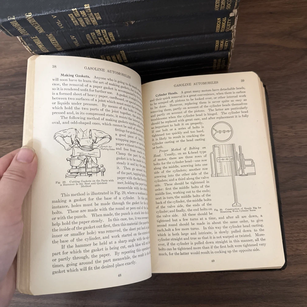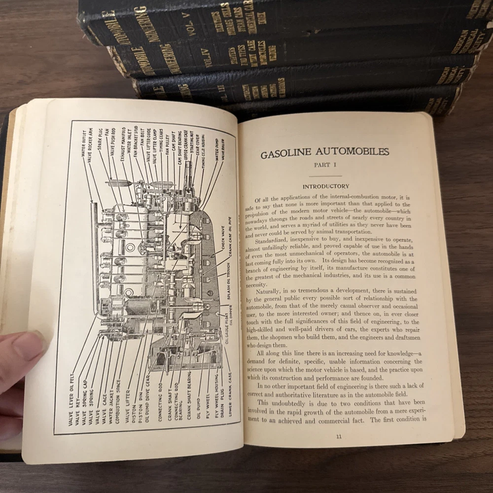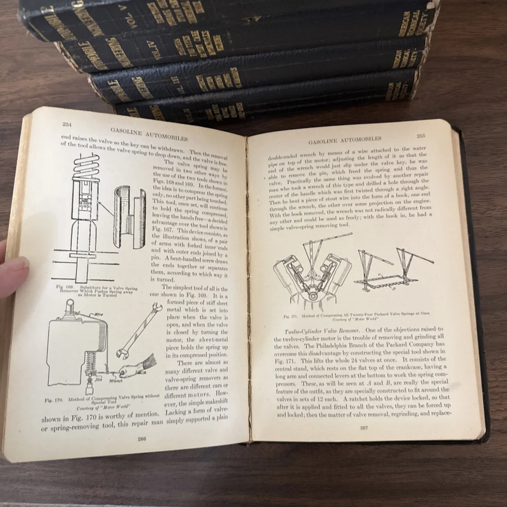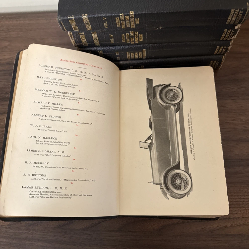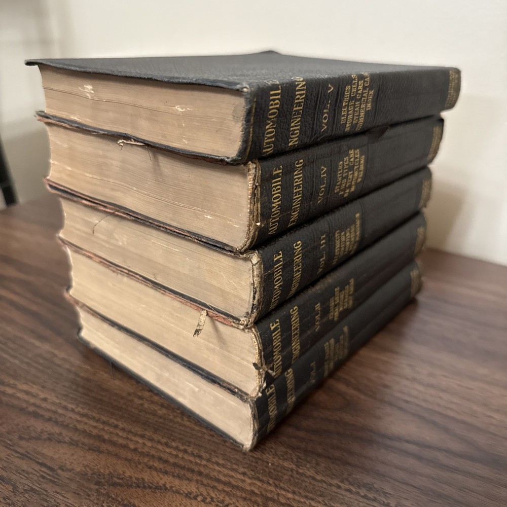 Automobile Engineering American Technical Society Book Set of 5 1918 As shown in photos. Antique books in used condition - covers are scuffed and have small tears at the edges as pictured.