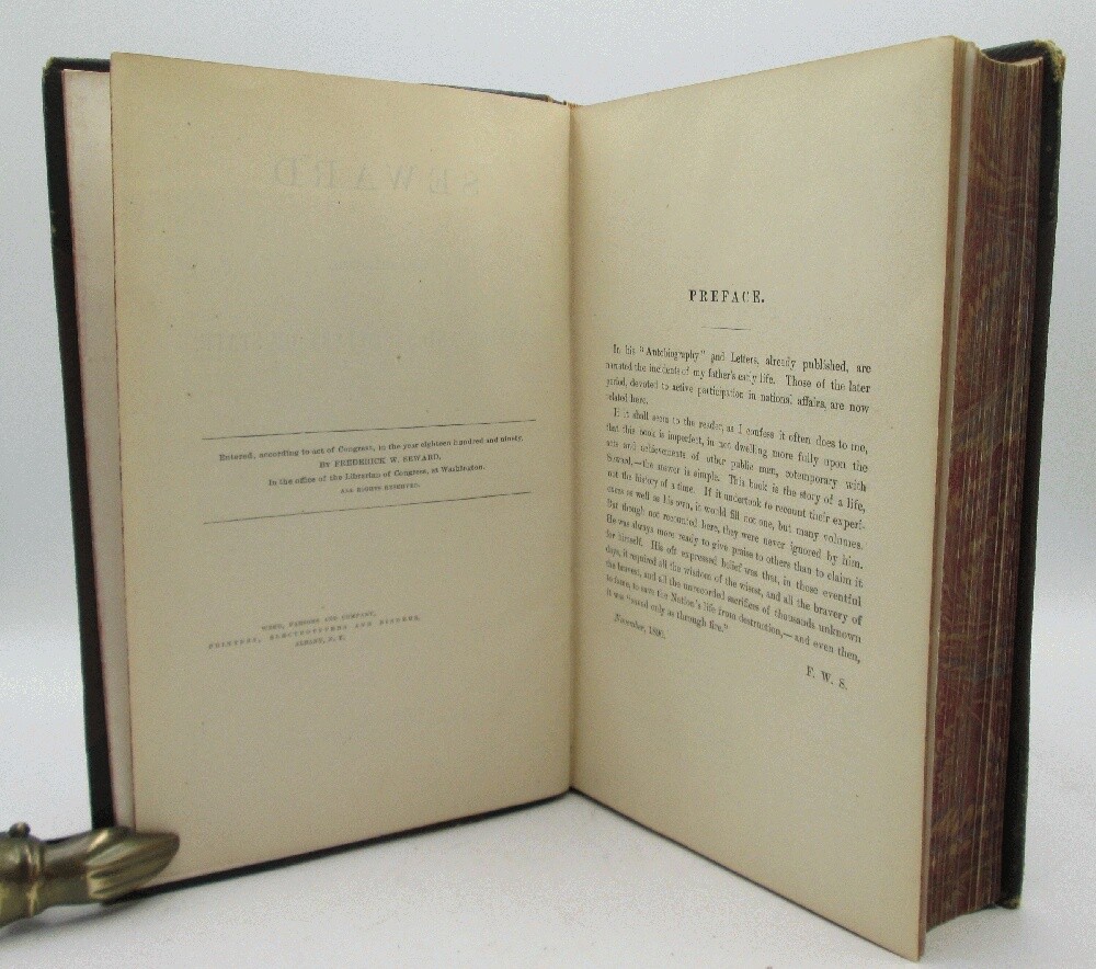 Ivy Ridge Books presents ... Seward at Washington as Senator and Secretary of State, a Memoir of His Life, with Selections from His Letters 1846 - 1861 Author: Frederick W. Seward Publisher: Derby and Miller Release Date: 1891 Seller Category: Biography Qty Available: 1 Condition: Used: Very Good Sku: 10621 Notes: Boards are bound in brown cloth and leather corners and spine. Corners are worn, edges rubbed, spine rubbed on the edges head/tail. Front hinge opening at title page. 1891 printing. All orders packed with care, dust jackets protected by Brodart sleeve, independent bookseller since 2011 Don't forget to check out other great deals in our eBay Store!!