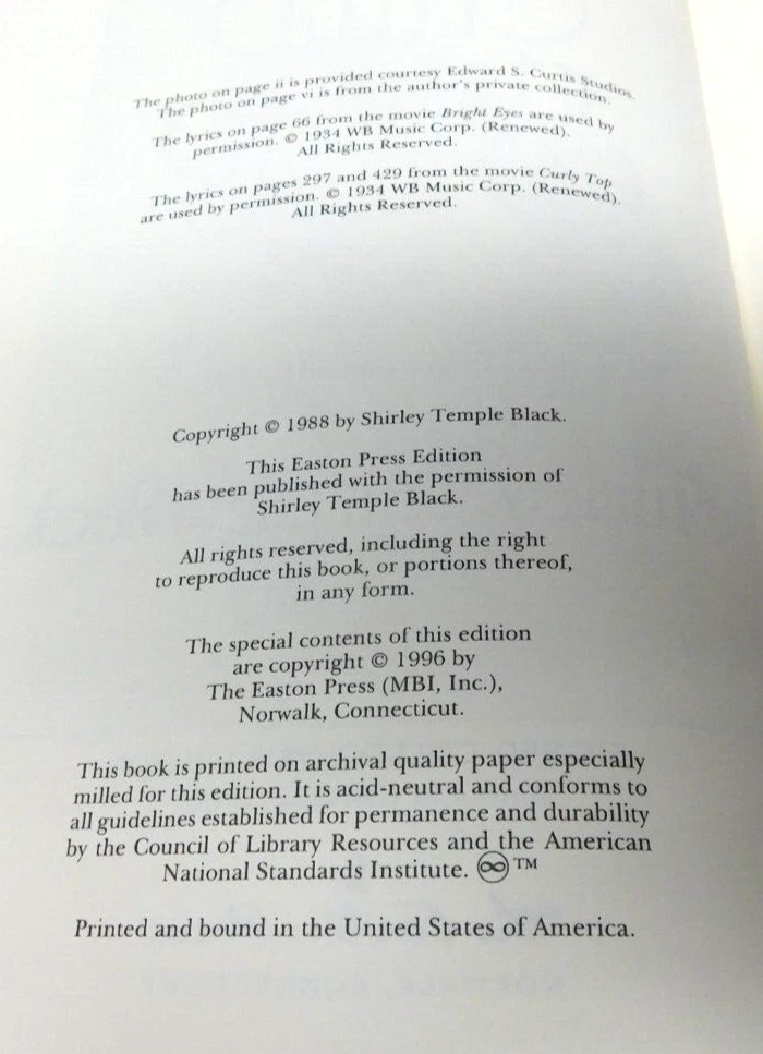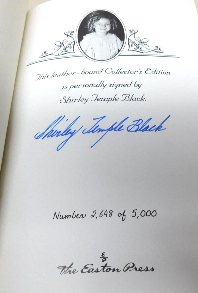 Shirley Temple Child Star - Autobiography Signed & Numbered Collectors Edition Signed Collector's Edition - Leather Bound - Gold Leaf Edges - No. 2,648 of 5,000 - The Easton Press - Published in 1988 - 548 pages - Very Good Condition