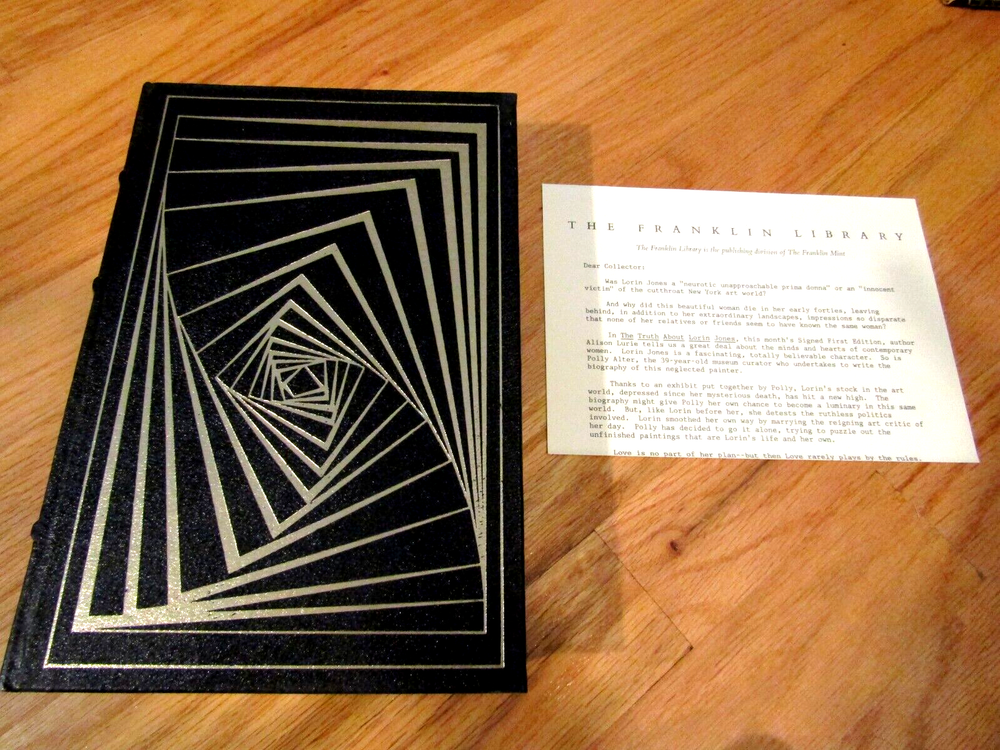 1988, signed by author, Alison Jones, Franklin Library first edition THE TRUTH ABOUT LORIN JONES tells the story of a museum curator and a neglected painter..... gilt edges, silk bookmark, and in condition as described above.