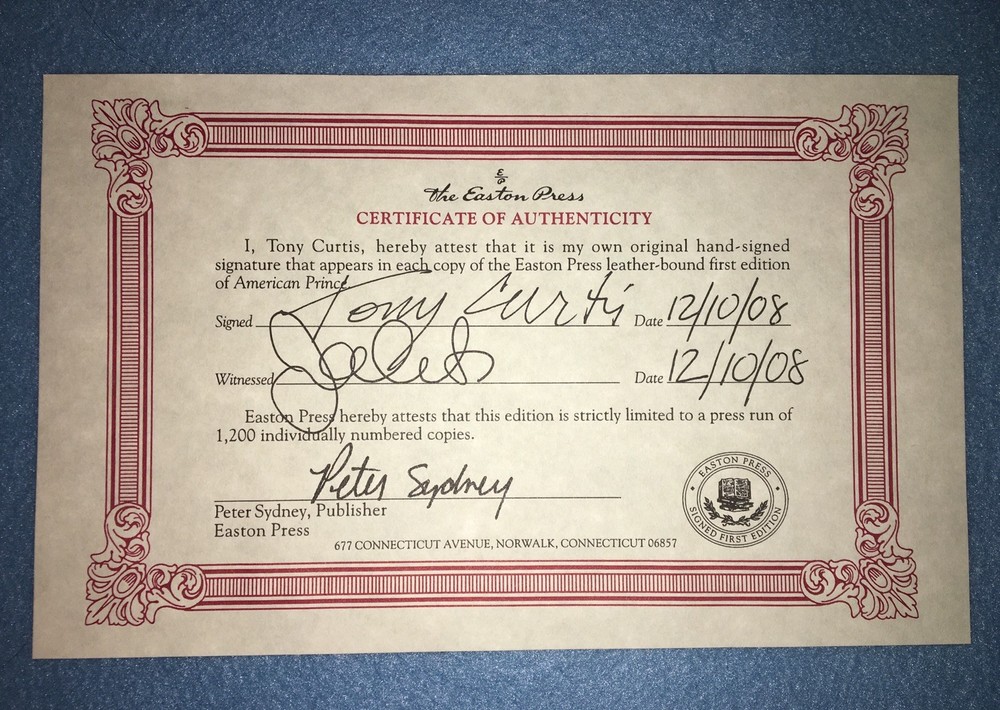 This book is part of the SIGNED FIRST EDITIONS collections by EASTON PRESS, Norwalk, Connecticut EASTON PRESS FEATURES FOR THIS SERIES Number copy personally signed by author Certificate of Authentication This copy is No. 86 out of 1,175 259 pages Full navy blue Leather-bound binding with rich grain and deep color. The intricate binding design is deeply embossed on the cover. Gleaming 22kt gold adorn the spine Archival-quality paper, which ensures the pages with not turn yellow with age Lovely gilding on the page edges Beautiful moire' fabric endsheets Permanent satin ribbon page marker Publishers card Please review all pictures as they are part of the description. You will receive the exact item that is described and pictured. The media shipping quote in this listing is for the lower 48 states only. If you live outside of that area, please send me your zip code and I will send your a price for shipping to your area. ALL INTERNATIONAL SHIPPING WILL BE HANDLED BY EBAY'S GLOBAL SHIPPING PROGRAM. Please visit my store, Leahs Antiques for more unique treasures. ES/bj