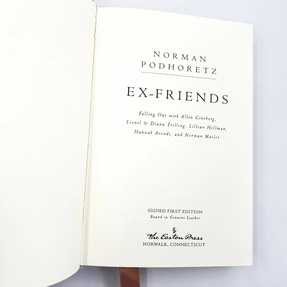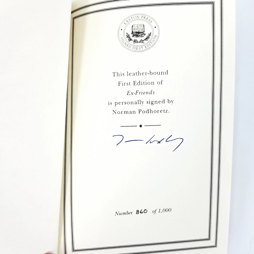 Ex-Friends by Norman Podhoretz . Easton Press, 1999. Leather-bound, limited edition, 860/1000. Signed by Podhertz on a special edition page up front. 244 pages. Gilt edges with bookmark.