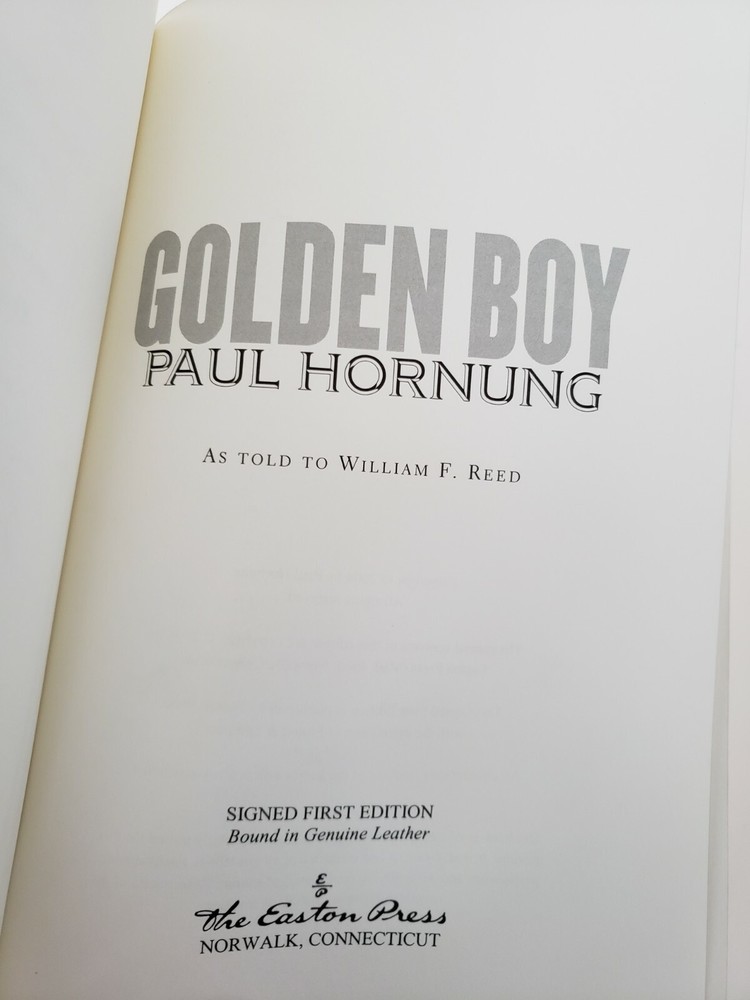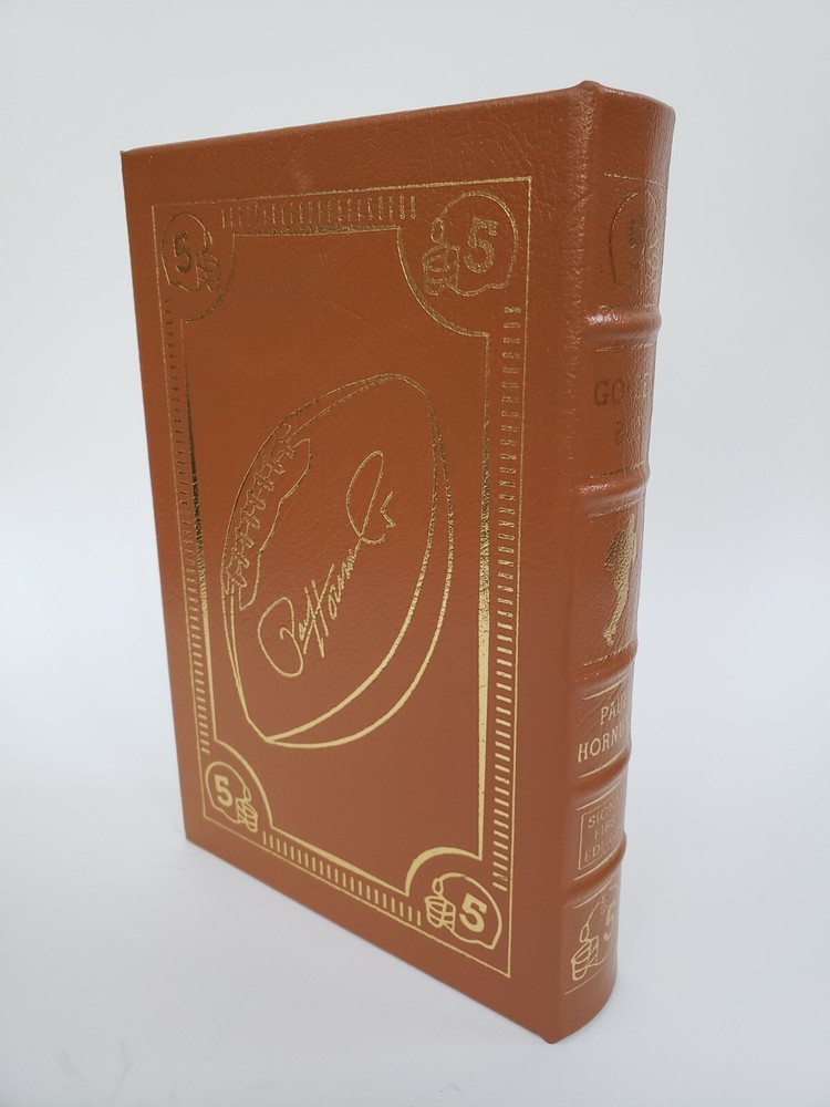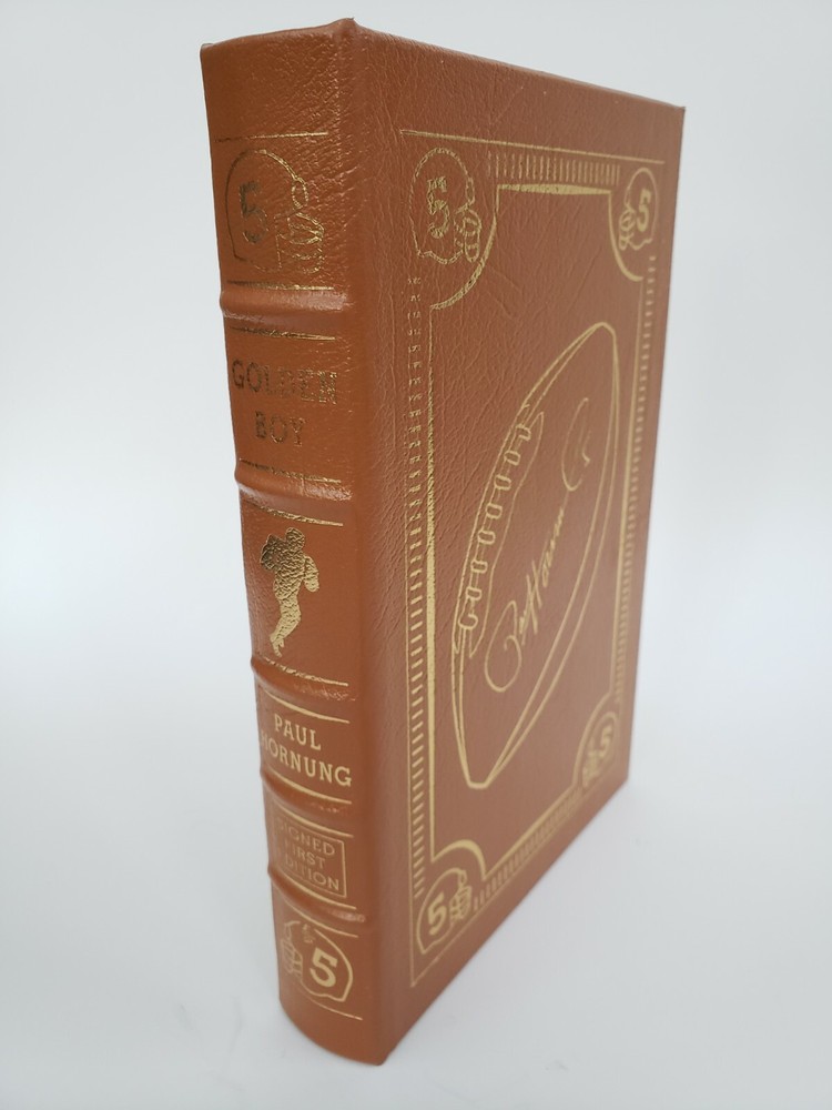 Golden Boy By Paul Hornung Signed by Paul Hornung on the limitation page. Norwalk, Connecticut: The Easton Press, 2004. Limited edition of 1500 copies of which this is copy number 1495. Bound in rich full leather - extensive gilt decoration on spine and both boards - raised bands on the spine - archival quality paper and satin ribbon bookmark. 8vo - 6 x 9 ½”. 291 pp. Includes The Easton Press note laid-in. Near fine. Minor rubbing to the exterior gilt edges. The interior is clean and solid. Please feel free to ask any questions. Sorry, "Best Offers" are not taken. Be sure to take a look at my store for similar items. Payment is requested as soon as possible. Shipment is made when payment has cleared. We will gladly combine shipping on multiple items to save on shipping costs. 100% Satisfaction Guaranteed - If you are not satisfied with your purchase, please contact us within 30 days of receiving the item. We consider a sale final after 30 days. All items must be returned with their original materials to receive a refund. Shipping is non-refundable.
