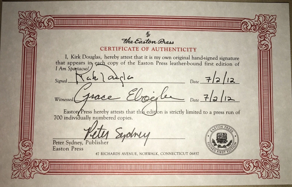 This book is part of the SIGNED FIRST EDITIONS collections by EASTON PRESS, Norwalk, Connecticut EASTON PRESS FEATURES FOR THIS SERIES Number copy personally signed by author on book Certificate of Authentication This copy is No. 234 of 700 210 pages Full tan and gold Leather-bound binding with rich grain and deep color. The intricate binding design is deeply embossed on the cover. Gleaming 22kt gold adorn the spine Archival-quality paper, which ensures the pages with not turn yellow with age Lovely gilding on the page edges Beautiful moire' fabric endsheets Permanent satin ribbon page marker Publishers card Please review all pictures as they are part of the description. You will receive the exact item that is described and pictured. The media shipping quote in this listing is for the lower 48 states only. If you live outside of that area, please send me your zip code and I will send your a price for shipping to your area. ALL INTERNATIONAL SHIPPING WILL BE HANDLED BY EBAY'S GLOBAL SHIPPING PROGRAM. Please visit my store, Leahs Antiques for more unique treasures. ES/bj