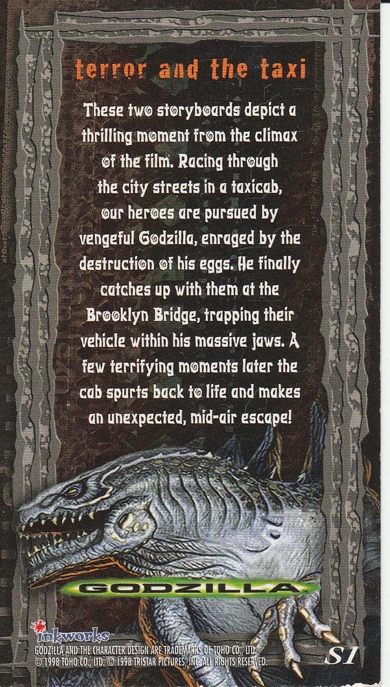 A Silver "Terror and the Taxi" Godzilla card. Plastic card cover included. Since I have two available, offers will be offered. Each order comes with one semi-opened wrapper (while supplies lasts). The item will be shipped AFTER it's fully paid. Don't forget to leave feedback. If the item is not in auction, I'm open for Best offers. If you have any question about the product and/or combined shipping, ask me.