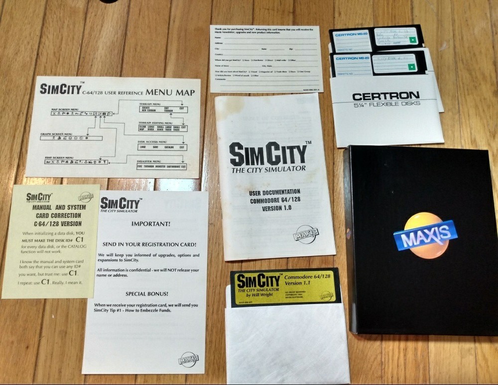 Includes extra save discs from original owner. Experience the early days of city simulation with Sim City v1.1 for Commodore 64/128. Released in 1989 by Maxis, this game lets players manage resources, build structures, and maintain services to ensure the success of their virtual city. A classic in the simulation genre, it comes complete in box (CIB) with the original manual, offering a rare piece of gaming history. The game features an engaging boxing sub-genre element, adding a unique twist to the traditional simulation gameplay. It is designed for NTSC-U/C (US/Canada) region systems and proudly manufactured in the United States. Fans of vintage gaming and collectors alike will appreciate the inclusion of the manual, making this a valuable addition to any retro gaming library.