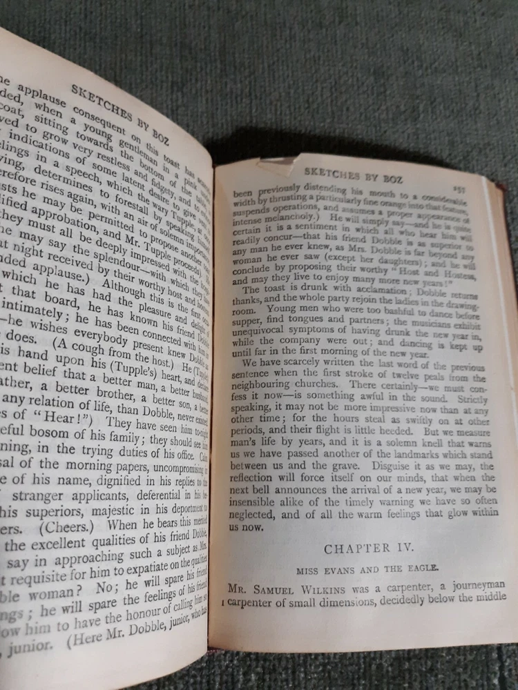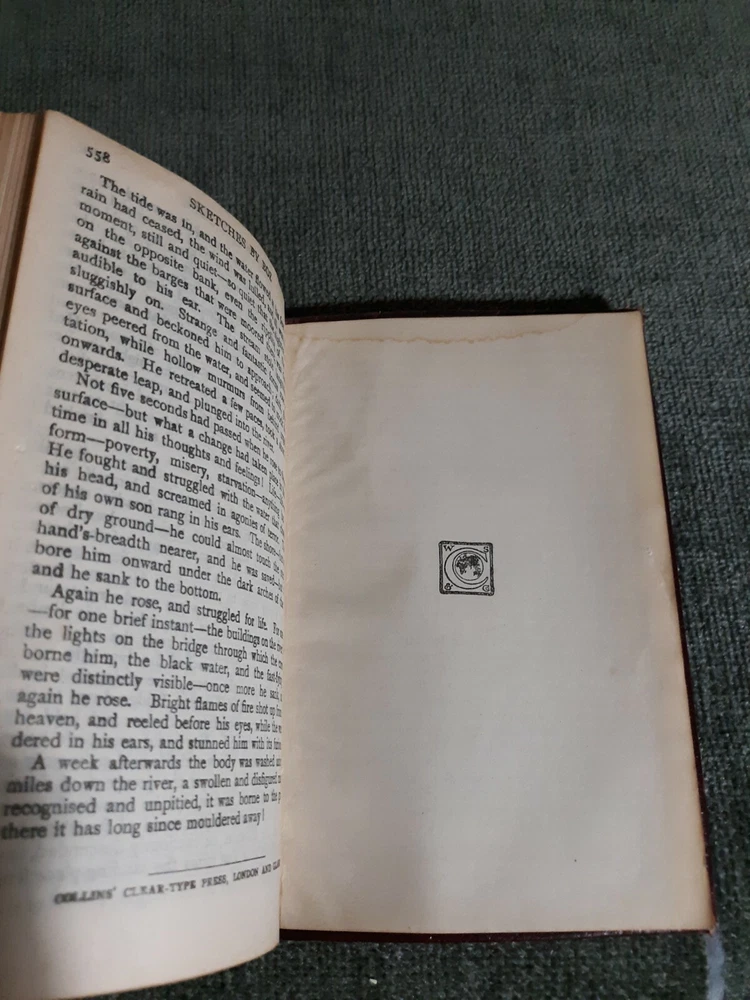 #Media mail is lowest priority and sometimes takes much longer than the estimate, especially during the holiday season. I am offering priority mail as an option. It is faster and more reliable, but unfortunately, more expensive. Even priority mail may take days longer than ebay's estimate, but media mail at it's worst has been known to take weeks longer. That is the exception, but it can happen. Please understand after I ship your package, I have no control over how the postal service chooses to route it. If you have a problem with your order, please contact me first, and I will work with you to arrive at a good solution. Sketches By Boz(Charles Dickens), Old, No Date, Fllexible Leather, Illustrated,G. Antique book in very good condition. Flexible leather cover is intact and presentable, with rubbing wear on spine ends and corners. Pages are of very thin paper. They are generally clean and in good condition, with very few blemishes. One page has small tear on top edge. A few pages have top corner creases. Pages are moderately wrinkled. There are a couple of small foxing spots. That was all I could find in the entire text. There is a stain mark on rear endpaper, but not on text pages. Binding is intact and feels firm. No writing or other marking Several illustrations. Faded gilt on top page ends. Book is about 4 1/4 by 6 1/8 inches. 558 pages.