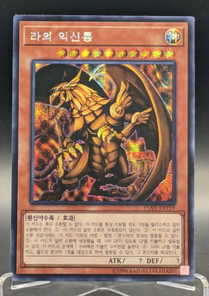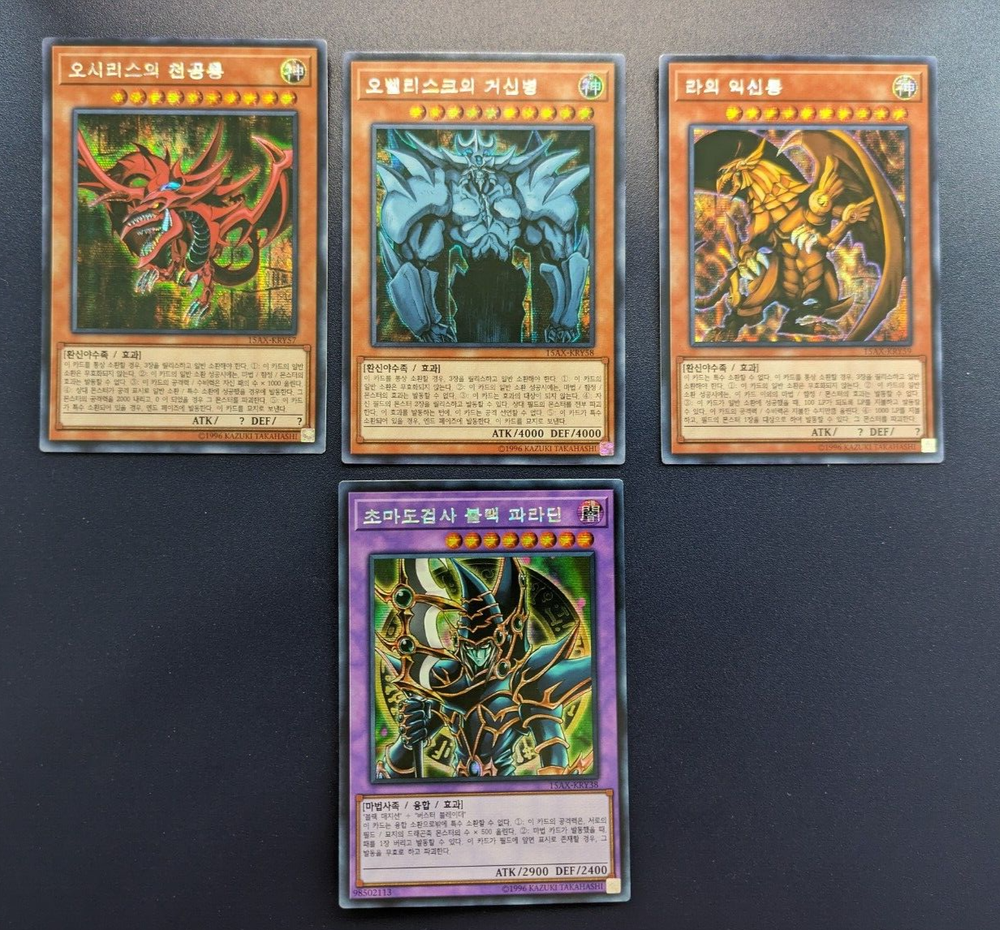 Slifer 15AX-KRY57 Obelisk 15AX-KRY58 RA 15AX-KRY59 Dark Paladin 15AX-KRY38 Die Karten werden sicher verpackt, Versand erfolgt versichert mit DHL. Die Versandkosten sind kombinierbar. Bei Fragen gerne melden.