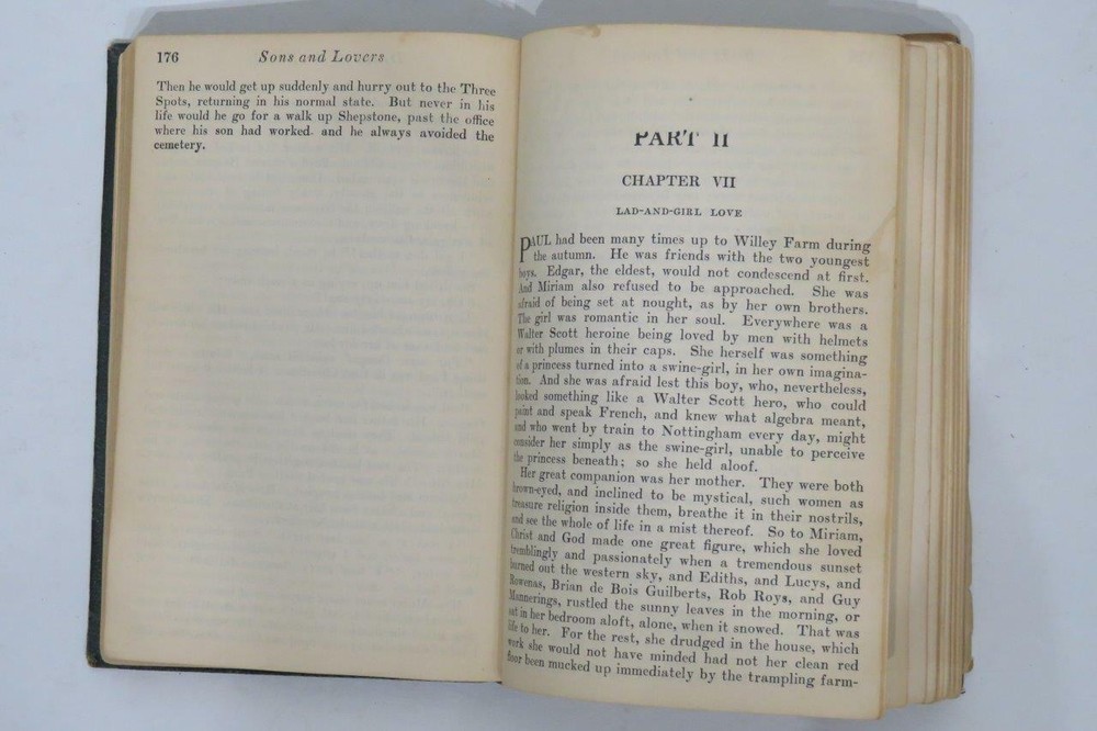 I offer several shipping services. Make sure to choose the one that is the best rate for your location. If you make multiple purchases and want to combine shipping please request an invoice before you pay. To do that put the items in your shopping cart, go the payment page and there you will find a "request invoice" button. Please scroll over the item with the zoom feature to see detail. Lovely little book by D.H. Lawrence titled "Sons & Lovers". This semi-autobiographical novel explores the emotional conflicts through the protagonist, Paul Morel, and the suffocating relationships with a demanding mother and two very different lovers. It is a pre-Freudian exploration of love and possessiveness. The novel initially received a lukewarm critical reception, along with allegations of obscenity, it is today regarded as a masterpiece by many critics and is often regarded as Lawrence's finest achievement. Measures 6.5 x 4.5 x 1 inches with 517 pages. Copyright 1913, this copyright and printing 1922. Again, please scroll over the item with the zoom feature to see detail. TERMS OF SALE Please look your item over carefully before you purchase (use the magnifier).I try very hard to take representative pictures and give details about the product so that you know what you are purchasing. If my detail doesn't answer your question please write. Thank you in advance. FINAL DETAILS If you purchase multiple items don't pay until I package them and invoice you. Please note that any photos in my listings are the real item. I don't use stock photos. Ask questions if I have not been clear in my listing before you bid. Enjoy shopping. Support your local merchant ~ and your friendly eBay seller. Visit my store when you get a chance. I carry a wide variety of interesting, useful, unique, and unusual items. This is a great place for gift shopping. I am always happy to combine shipping costs. PAYMENT Please make payment within 3 days of purchase. If you need more time please write. If you change your mind please write. SHIPPING PLEASE NOTE: Books, tapes, DVD's all ship by Media Mail. It's not the quickest but it will save you lots of money. If you need something quicker just let me know and I will let you know the new shipping charges and re-invoice you for the difference. PACKAGING: I use used boxes and fluff. I do this because I care about the planet and all who live here and my future generations. Just thought you should know. SHIPPING COSTS: I charge actual shipping to your location. SHIPPING TIME: I usually ship the same or next day after your purchase depending on whether my mail has already been picked up. If you purchase on a Friday after mail time I may not be able to ship until the following Monday. TIMELINE: When I ship you will receive a letter from PayPal with your tracking information. There is a link on eBay so you can check the progress of your package. INTERNATIONAL: INTERNATIONAL BUYERS CUSTOMS: I welcome international bidders. Import duties, taxes and charges are not included in the item price or shipping charges. These charges are the buyer's responsibility. Please check with your country's customs office to determine what these additional costs will be prior to bidding/buying as I don't have that information. I do not declare merchandise as gifts for international sales and I don't put a lesser value on the customs form. Please don't ask. INTERNATIONAL BUYERS POSTAGE: If you are an international buyer postage will be calculated according to your location. International postage can be costly. Most items less than 4 pounds can ship by First Class. Anything over 4 pounds will have to ship Priority mail. Size matters. Some items can't ship to certain international locations because of size restrictions. INTERNATIONAL BUYERS HANDLING FEE: I also charge a $2 handling fee for International shipments to help defray the cost of insurance (included in the shipping price you see for your area). Again, I thought you should know. ABOUT US We find the treasures you've been looking for! I treat all of my customers with the greatest courtesy. If you feel there is a problem please write. Hard to believe I know, but, I have made mistakes ~ and I'm pretty sure I haven't made my last one. The good news is that I always set my mistakes to right if given the chance.