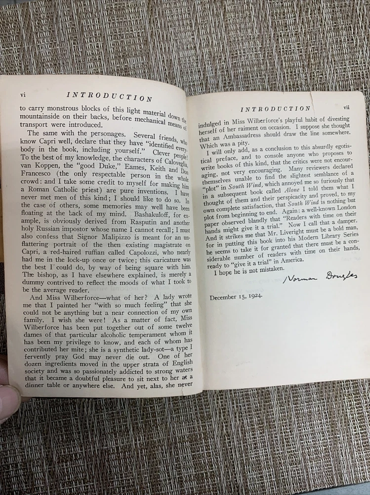 South Wind by Norman Douglas - Modern Library Boni and Liveright 1925 Leather. Front cover and four corners have some worn out, other than that, All the pages are in good condition