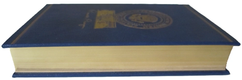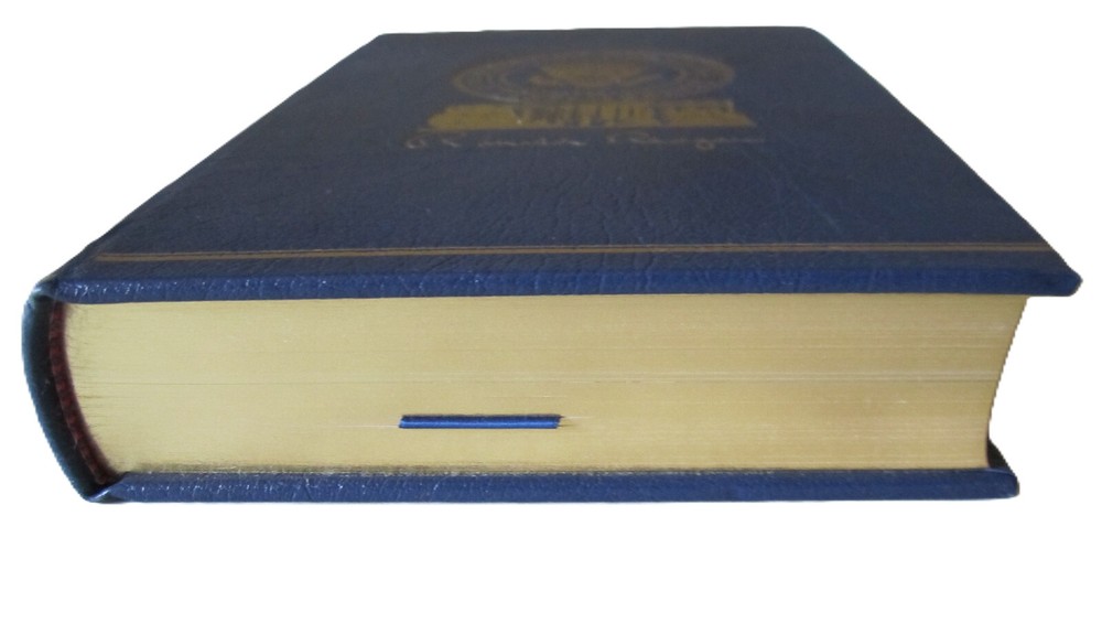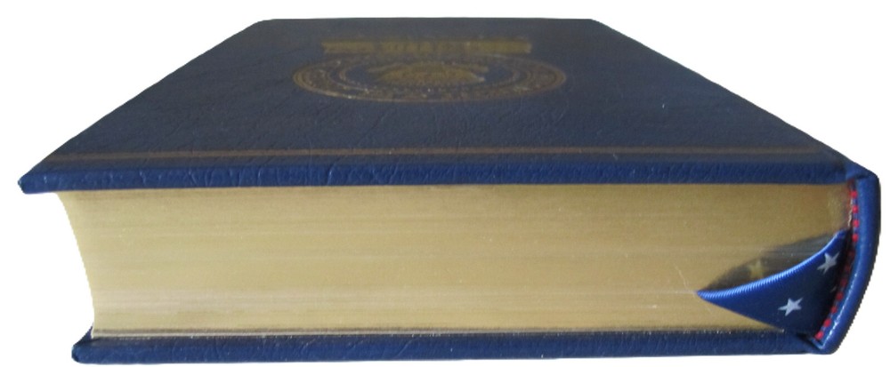 Navy blue leather with gold titling. edges and satin bookmark. Limited, signed first edition. Copy 544 of 5000....