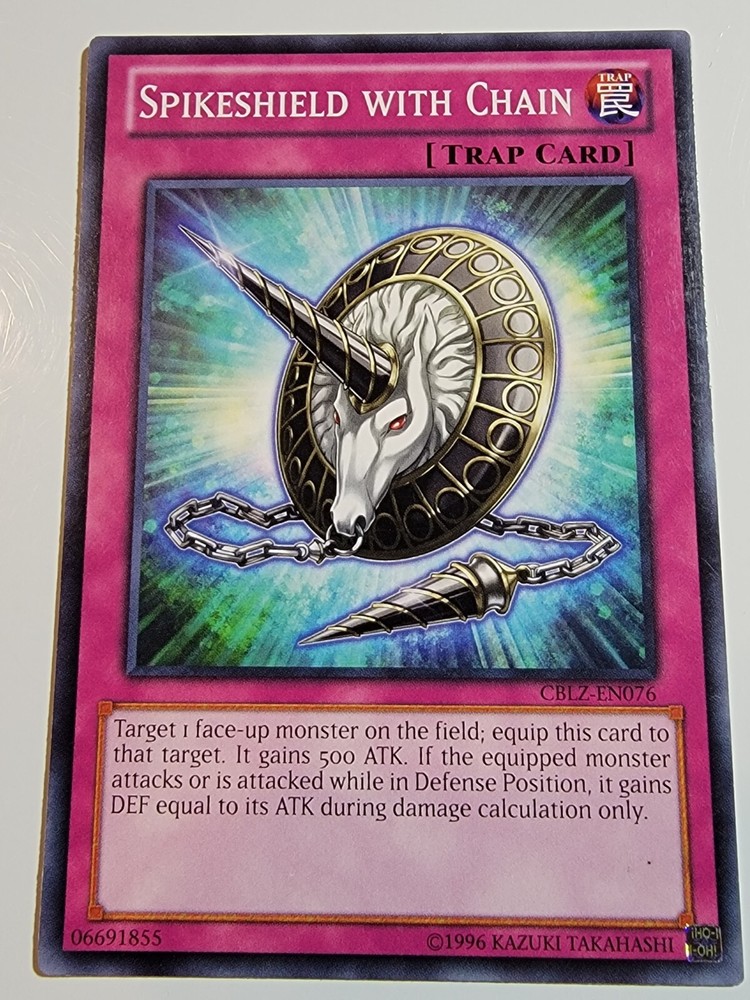 Spikeshield With Chain CBLZ-EN076 Common Unlimited Yugioh. Overall lightly played condition. (Please reference pictures for c osmetic condition). Take advantage of our multi item discount!!! When you buy 2 items you will have the opportunity to select a 3rd item of equal our lesser value for free from our whole inventory. (Must use Ebay's shopping cart feature in order to take advantage of this discount). If you have any inquiries please feel free to message us and we will respond as soon possible, usually within 24 hours. SHIPPING We almost always use USPS as our primary SHIPPING service. We ship within 24 hours of receipt of payment and will always provide tracking, unless otherwise stated in the listing. (We reserve the right to use a different carrier or service). FEEDBACK Your FEEDBACK is important to us as a growing small business. If for any reason you are unhappy with your transaction, please message us and we will do everything in our power to make it right. Returns Returns are accepted within 30 days of confirmation of delivery. If there is anything you are unhappy about with your purchase please message us and we will respond within 24 hours to your concerns. Thank you for supporting our small business. We appreciate your valued business with us and look forward to serving you in the future. Dan & Tonya Dio's Eclectic Treasures