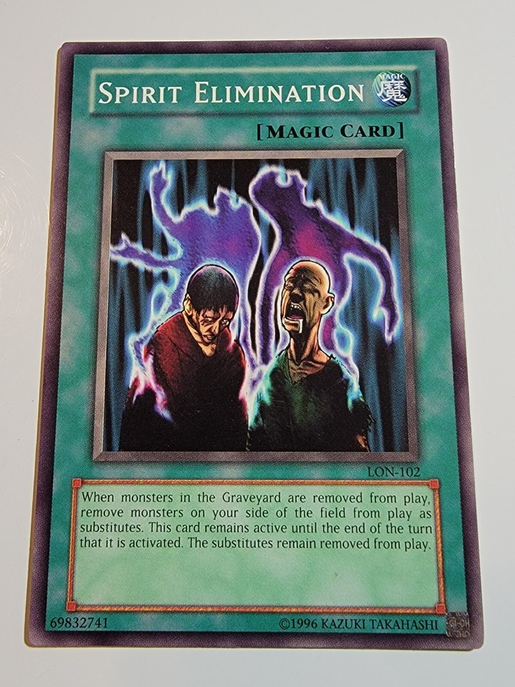 Spirit Elimination LON-102 Common Unlimited Yugioh. Overall NM-M condition. (Please reference pictures for c osmetic condition). Take advantage of our multi item discount!!! When you buy 2 items you will have the opportunity to select a 3rd item of equal our lesser value for free from our whole inventory. (Must use Ebay's shopping cart feature in order to take advantage of this discount). If you have any inquiries please feel free to message us and we will respond as soon possible, usually within 24 hours. SHIPPING We almost always use USPS as our primary SHIPPING service. We ship within 24 hours of receipt of payment and will always provide tracking, unless otherwise stated in the listing. (We reserve the right to use a different carrier or service). FEEDBACK Your FEEDBACK is important to us as a growing small business. If for any reason you are unhappy with your transaction, please message us and we will do everything in our power to make it right. Returns Returns are accepted within 30 days of confirmation of delivery. If there is anything you are unhappy about with your purchase please message us and we will respond within 24 hours to your concerns. Thank you for supporting our small business. We appreciate your valued business with us and look forward to serving you in the future. Dan & Tonya Dio's Eclectic Treasures