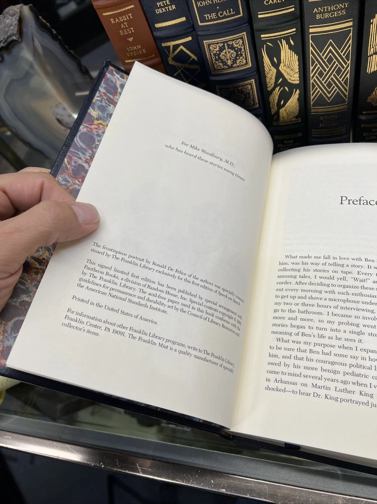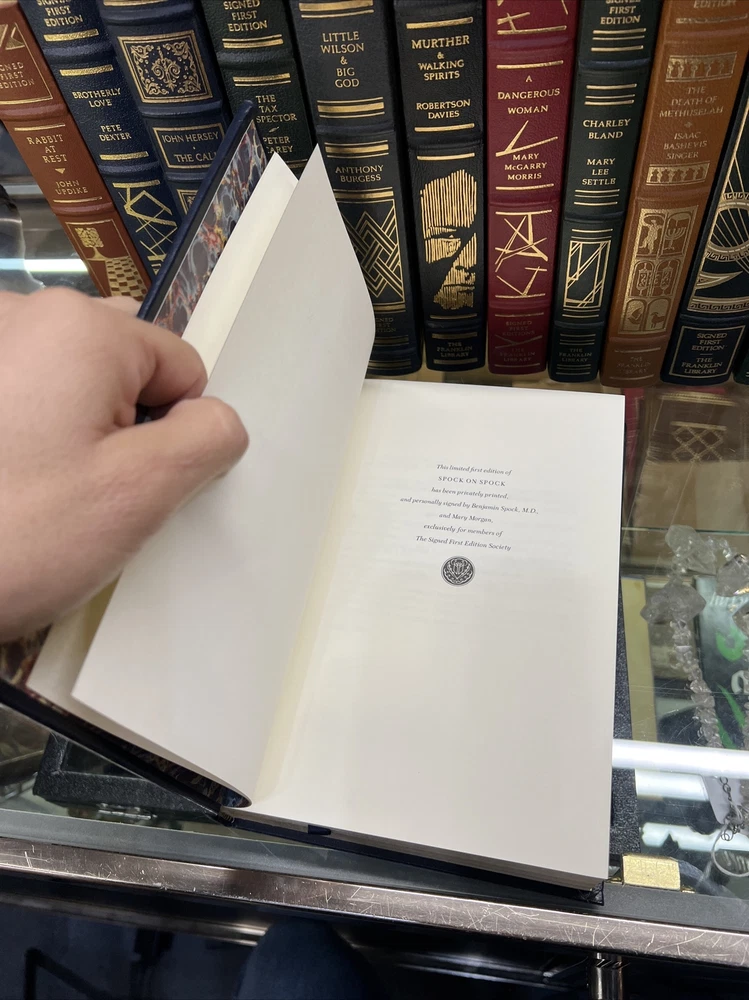 Spock on Spock Franklin Library Limited Signed First Edition by Spock and Morgan. Book came from home of a smoker. I recently purchased the books so they have not had a chance to air out. Please be advised before bidding. Book is in excellent condition otherwise