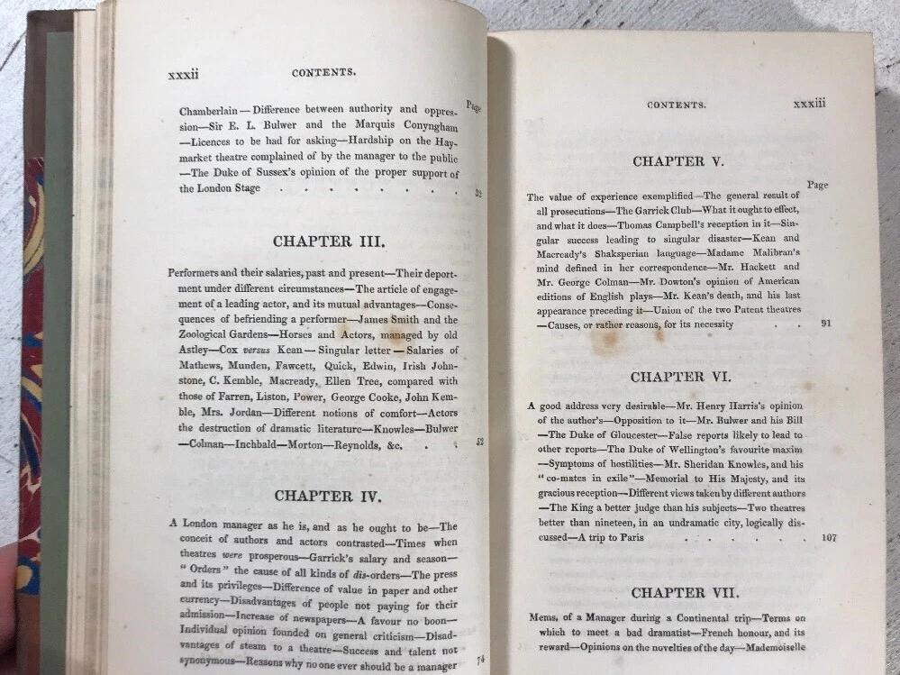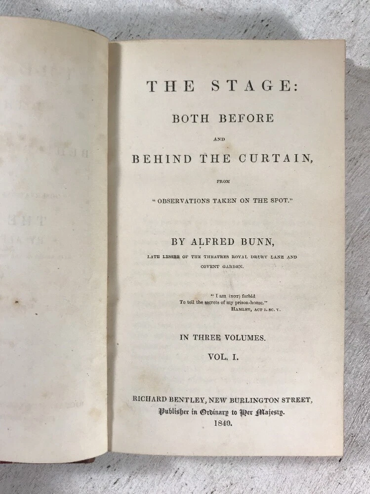 Stage Both Before & Behind The Curtain, from Observations Taken on the Spot by Alfred Bunn. Condition: A little wear to extremities else very good vintage condition. All bindings tight and sound. See photos for complete description and condition. Publisher: Richard Bentley: London Publication Date: 1840 Physical: 3 vols Size (inches): 7.5 x 4.5 x 2.5 inches of running shelf space Binding: Brown 3/4 leather with marble boards. Gilt titles on spine. All page edges marbled. A really lovely set. Language: English Check out more books and stuff here at my Ebay store: https://www.ebay.com/str/ingeneral?_trksid=p2047675.l2563 Thanks for looking ( 502-f)