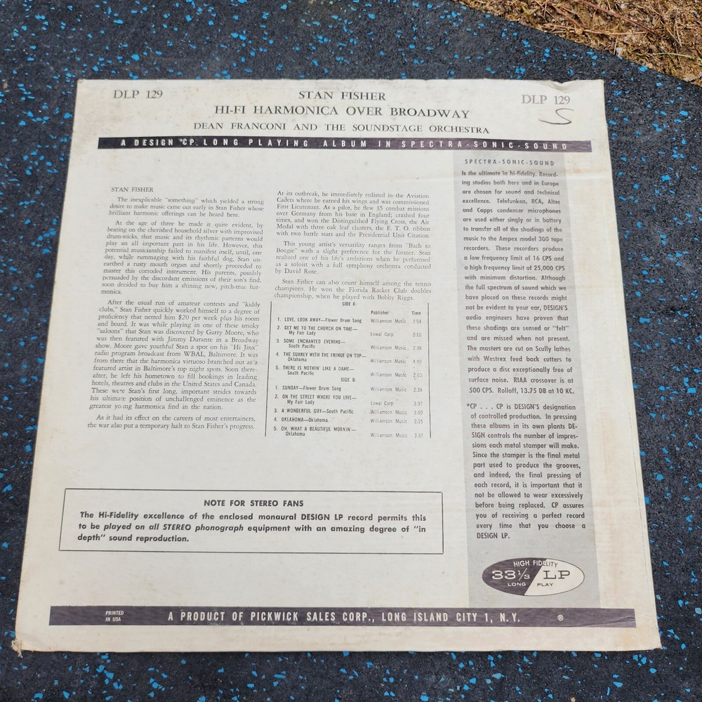 Stan Fisher Hi-Fi Harmonica Over Broadway Vinyl LP Design Records . Condition is Used. Shipped with USPS Media Mail....