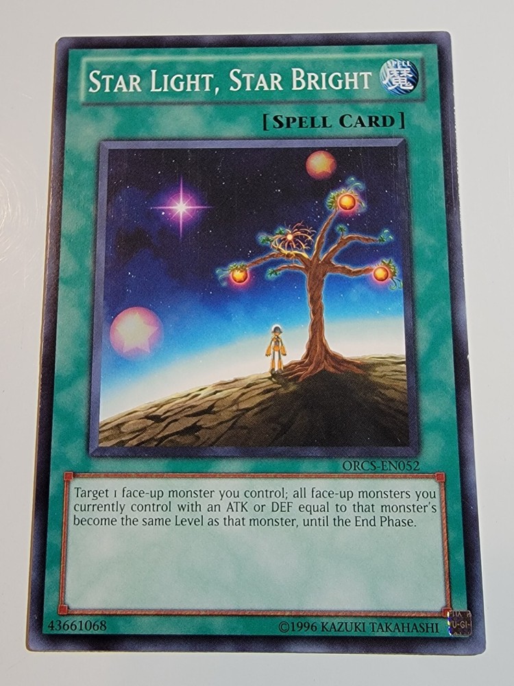 Star Light, Star Bright ORCS-EN052 Common Unlimited Yugioh. Overall NM-M condition. (Please reference pictures for c osmetic condition). Take advantage of our multi item discount!!! When you buy 2 items you will have the opportunity to select a 3rd item of equal our lesser value for free from our whole inventory. (Must use Ebay's shopping cart feature in order to take advantage of this discount). If you have any inquiries please feel free to message us and we will respond as soon possible, usually within 24 hours. SHIPPING We almost always use USPS as our primary SHIPPING service. We ship within 24 hours of receipt of payment and will always provide tracking, unless otherwise stated in the listing. (We reserve the right to use a different carrier or service). FEEDBACK Your FEEDBACK is important to us as a growing small business. If for any reason you are unhappy with your transaction, please message us and we will do everything in our power to make it right. Returns Returns are accepted within 30 days of confirmation of delivery. If there is anything you are unhappy about with your purchase please message us and we will respond within 24 hours to your concerns. Thank you for supporting our small business. We appreciate your valued business with us and look forward to serving you in the future. Dan & Tonya Dio's Eclectic Treasures