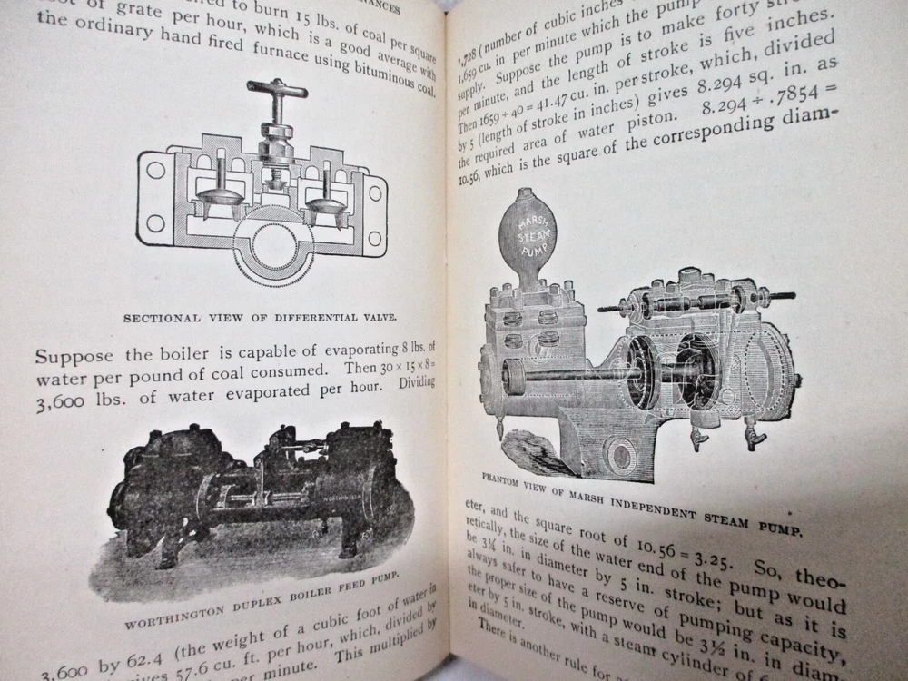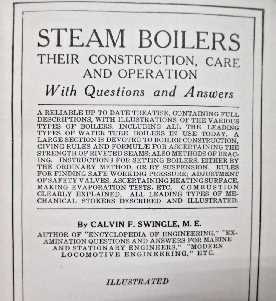 1917 / leather (maybe faux, I cannot tell) / includes fold out map of boiler furnace / good to very good condition / pages clean with no rips, tears, bends or markings noted / black and white illustrations Thanks for looking and please browse my other items H