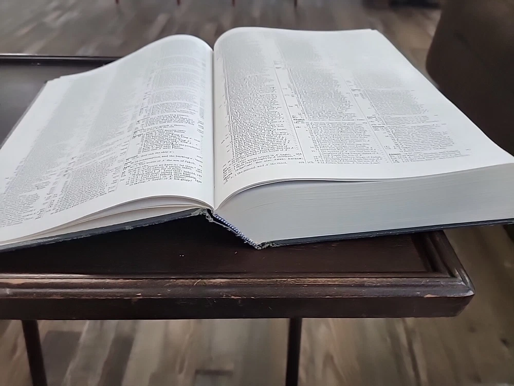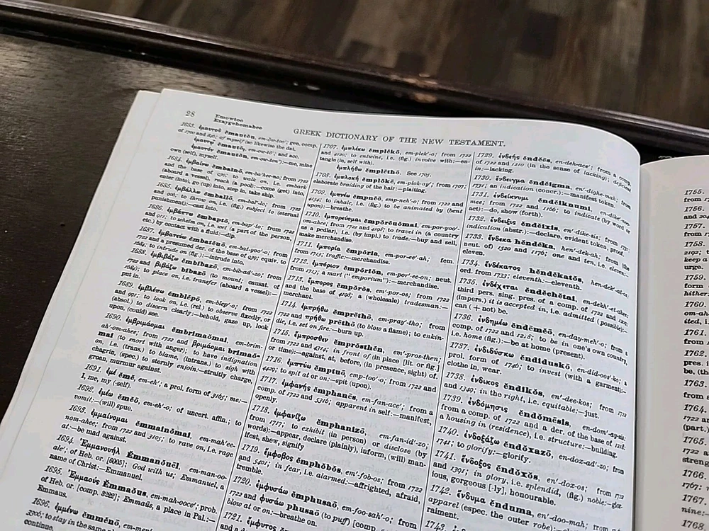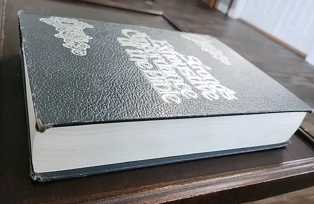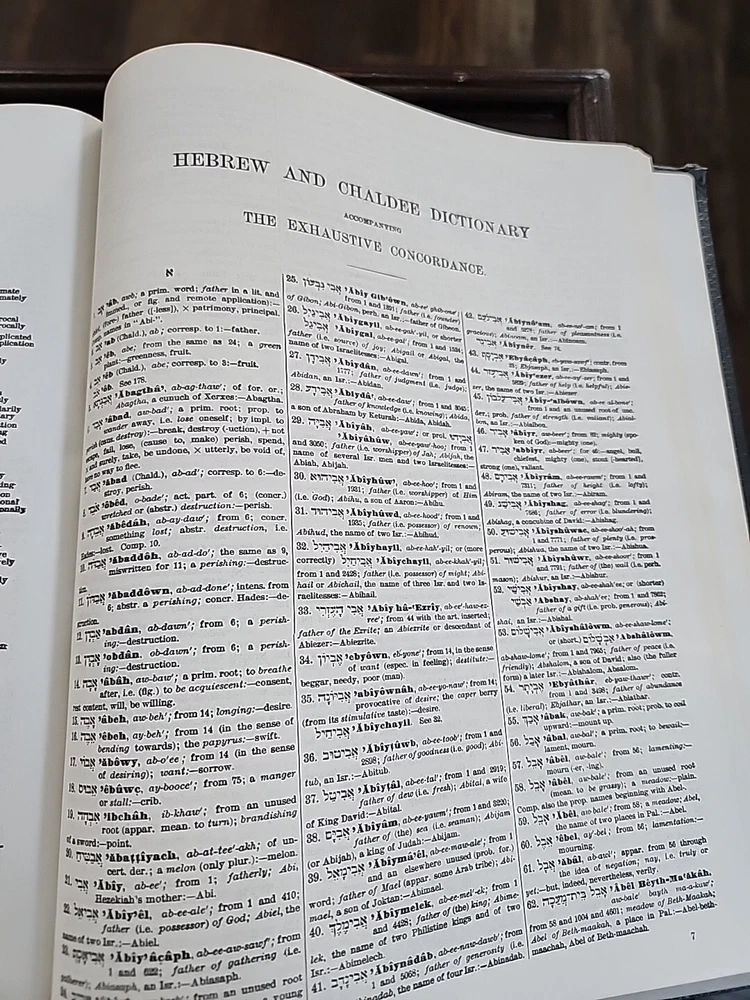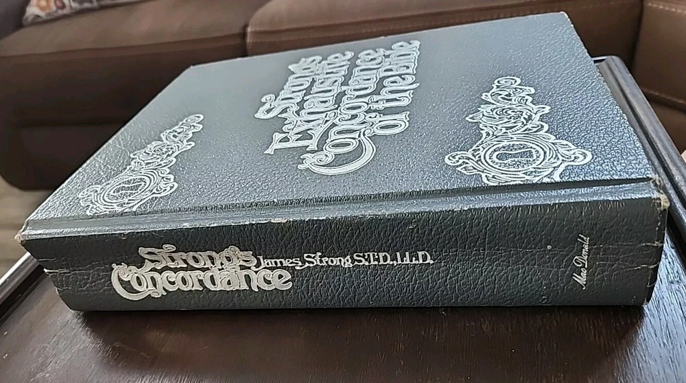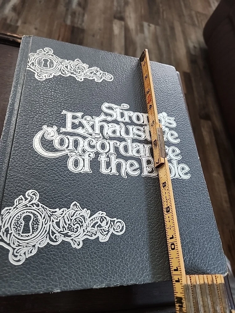 This exhaustive concordance of the Bible with Greek and Hebrew dictionaries by James Strong is a valuable resource for adults interested in spirituality and religious studies. The book is published by Crusade Bible Publishers and measures 9 inches in length, 11 inches in height, and 2 inches in width, with a total of 1545 pages. This Bible is used but appears to be in good shape other than some scuffing and wear on the corners and edges of the hardcover. It does not appear to have been written in, or highlighted. The book features a faux leather bound format and is vintage, although the publication year is unknown. It is a non-fiction narrative type and is written in English, the original language. The intended audience is adults, and the book is not personalized or inscribed. The features of the book include a Greek Testament Dictionary and a Hebrew Bible Dictionary. This item is perfect for those interested in religion and bibles, and it is a must-have for any collection.