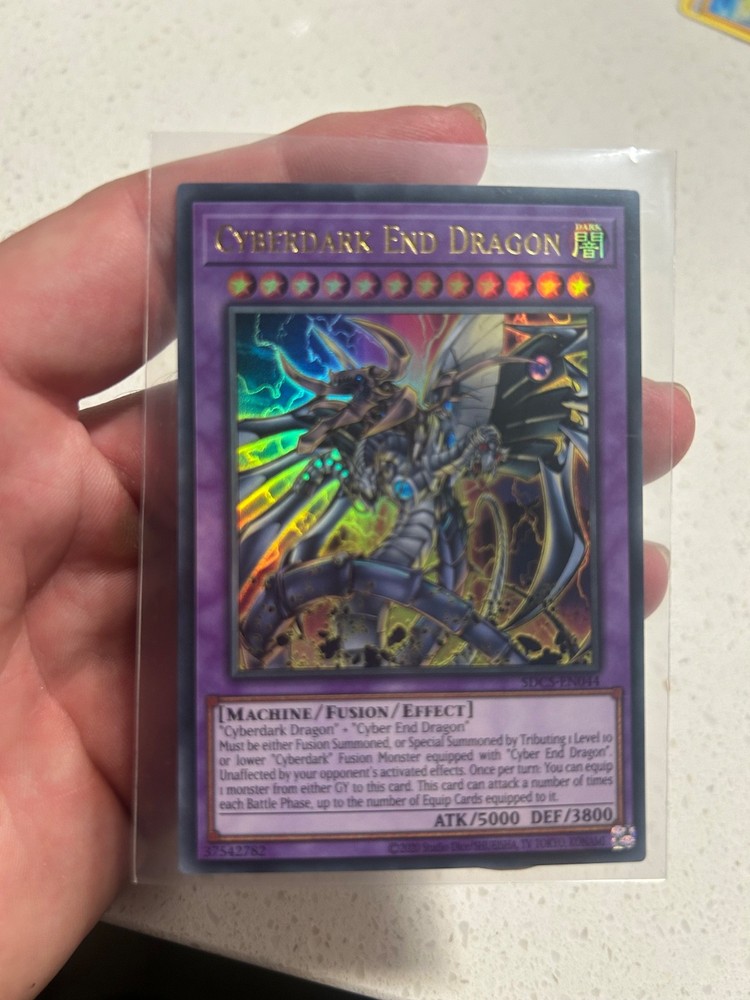 This Cyberdark End Dragon from the Cyber Strike deck is a beast! The Ultra Rare print looks amazing with its sleek, metallic finish. Perfect for competitive play or collecting, it’s a must-have for Yu-Gi-Oh fans. The card arrived in great condition, and the unlimited edition makes it easy to grab. Super happy with this purchase—definitely adds power to my deck!