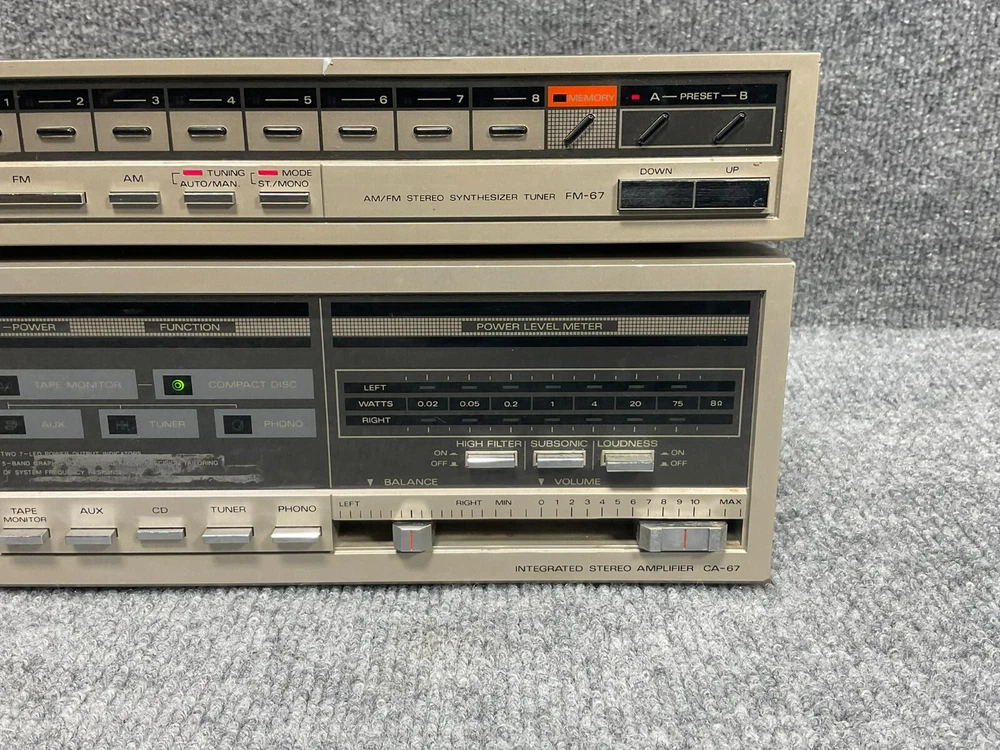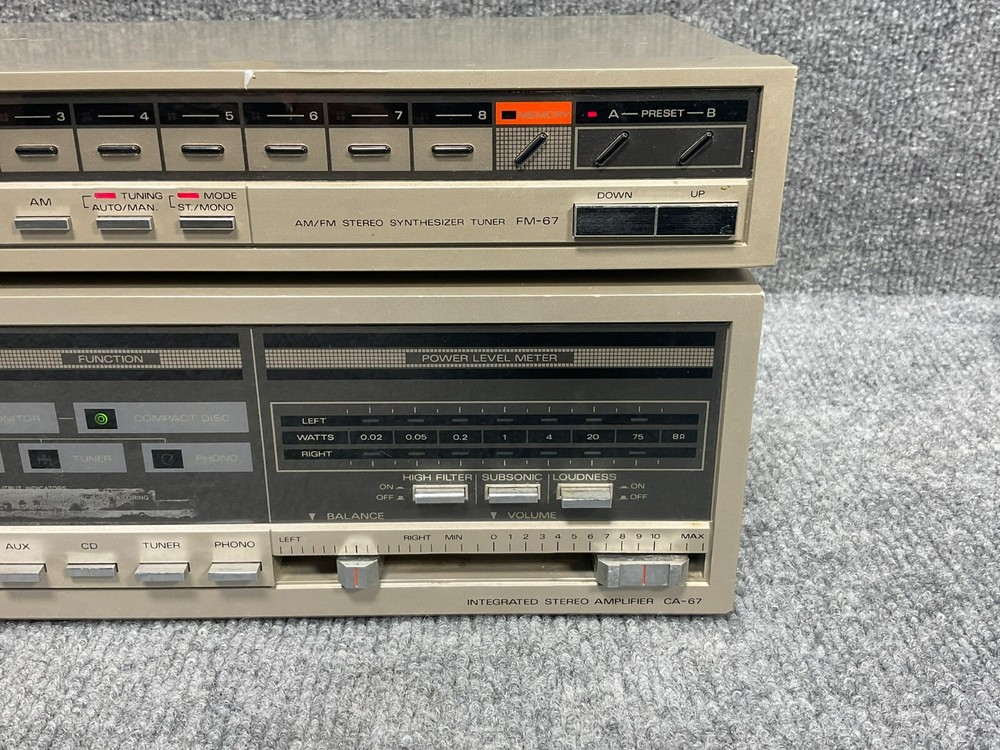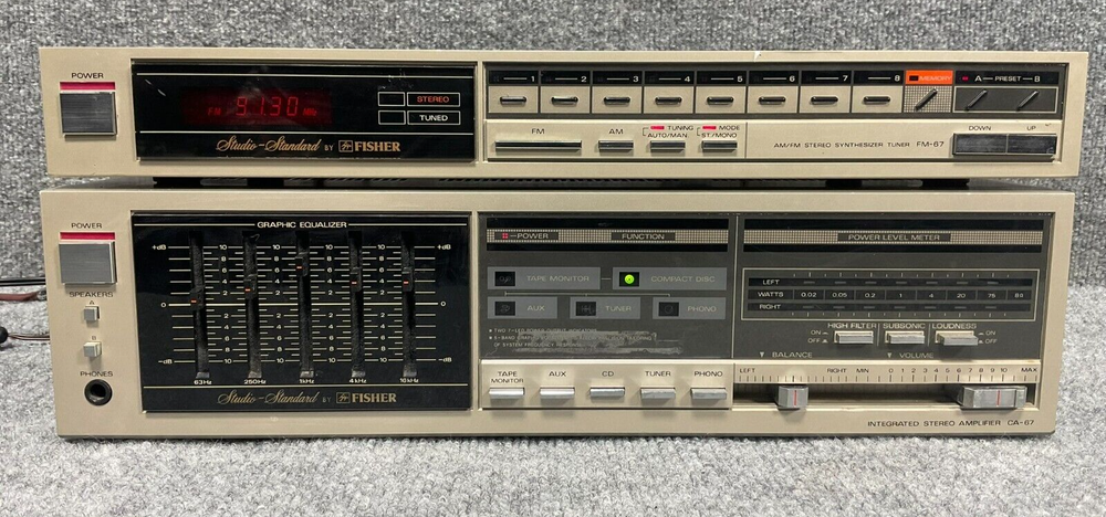 Studio Standard By Fisher AM/FM Stereo Tuner FM-67 Integrated Amplifier CA-67 Description Studio Standard By Fisher AM/FM Stereo Tuner FM-67 Integrated Amplifier CA-67 Product Detail • Brand : Studio Standard By Fisher • Model : FM-67 CA-67 • Type : Stereo Tuner Integrated Amplifier • Weight : 18lbs • Condition : This item came without cassette Deck and is pre-owned and shows signs of wear and tear consistent with regular use. Any noticeable imperfections, such as scratches, scuffs, or minor dislocations, are detailed in the description or visible in the photos. Please review all images and information carefully before purchasing. Additionally, it has been tested and will be tested again before shipping to confirm it is in the same condition as listed. Please Note: This item does not come with any accessories unless they are specifically mentioned in the listing description. It only comes with what is pictured. Please review the pictures before making a purchase. We value your business and encourage you to send a message if you have any issues or concerns I answer most questions instantly! Thank you! Customer satisfaction is our top priority. All products undergo quality checks to ensure they are in good condition when shipped to our customers. If a product is defective or damaged upon arrival, or if the wrong product is shipped, please understand that this is not intentional, as we have to pay for the shipping and the return. Please contact us immediately. “Returns are accepted within 30 days of the delivery date, and the item must be in its original new condition, with attached tags and wrap, and should not be worn or altered in any way. Otherwise, the sale is considered final. We cover all shipping costs for returns. Please contact us first if you have any problems, questions, or concerns.” We will be happy to resolve any issues you may have in a courteous and friendly manner. We appreciate your positive feedback and will do the same in return. Please do not leave negative feedback without first communicating with us. Please allow a maximum of 2 business days for us to respond.
