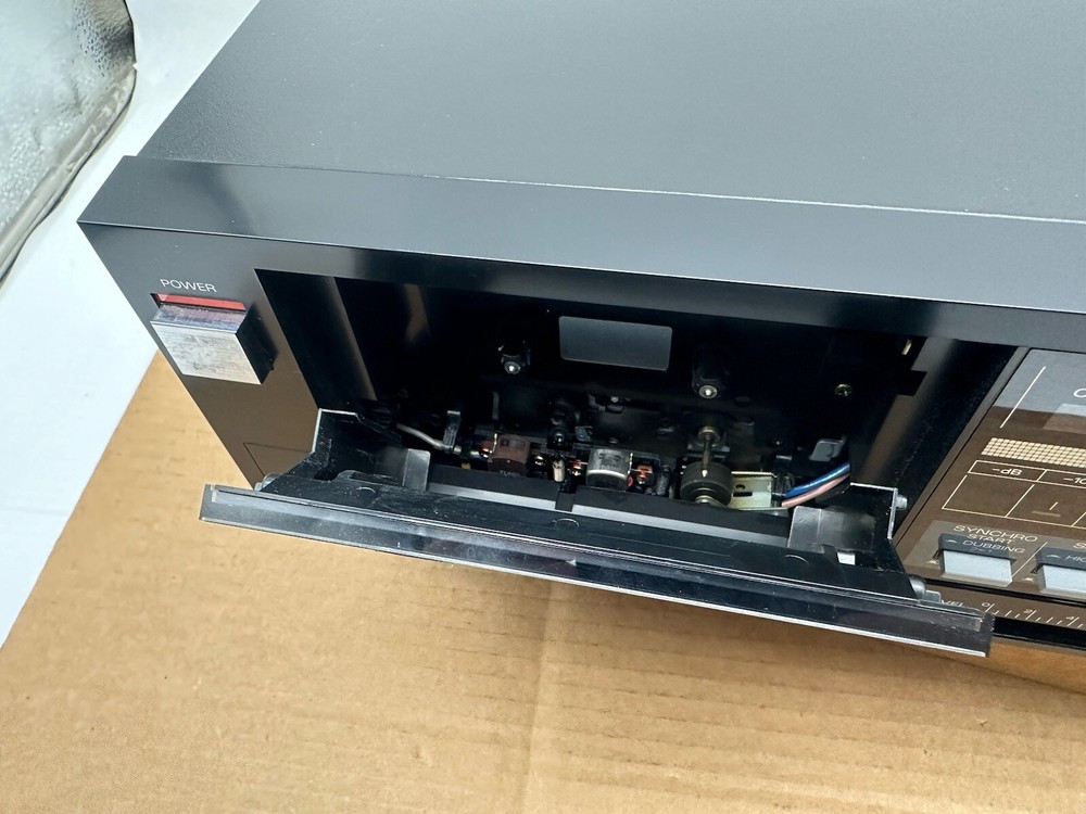 Unit powers on - but to the best of my knowledge sounds as though it needs at least new belts There is no movement in the cassette deck when buttons are pressed, and only a light whirring sound of the internal motor trying to move things Clean cosmetically free of any major external flaws or issues Sold as pictured for parts or repair Any questions please feel free to ask Thanks Ignore