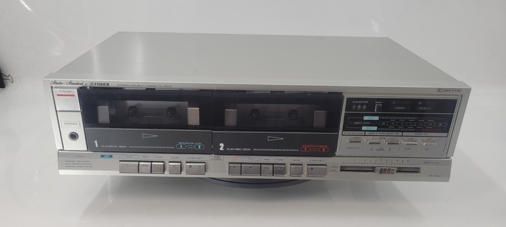 Studio Standard Fisher CR-W50 Stereo Dual Tape Deck Silver - AS-IS - PARTS REPAIR - NO RETURNS As this item is being sold AS-IS, this item should be considered to have defects, and we have done our best to disclose them. In the case of an item that doesn't function as intended, there is a chance that other flaws, that we are not aware of, may be present. Please take that into consideration when purchasing. Does not include the manual or any original packaging. Unit shows some wear and scratches, but overall is in good cosmetic condition. We could hear the belt motor run, but no movement on Play, FF or RW. Model #: CR-W50 Serial #: 162088420 Electronics Disclaimer: All electronics are marked with tamper proof security seals and serial numbers are recorded to prevent fraud. We do not repair electronics, nor have we attempted any repairs. We list items in a for AS-IS/PARTS REPAIR condition in the hopes that someone that can repair these items, or salvage parts from them that they might find useful. In either case, units sold in an AS-IS/PARTS REPAIR condition, are not returnable. We strive to take excellent pictures and describe items as thoroughly and accurately as possible, but please don't hesitate to ask any questions that you may have. Thanks for looking! SKU#: EB-15927