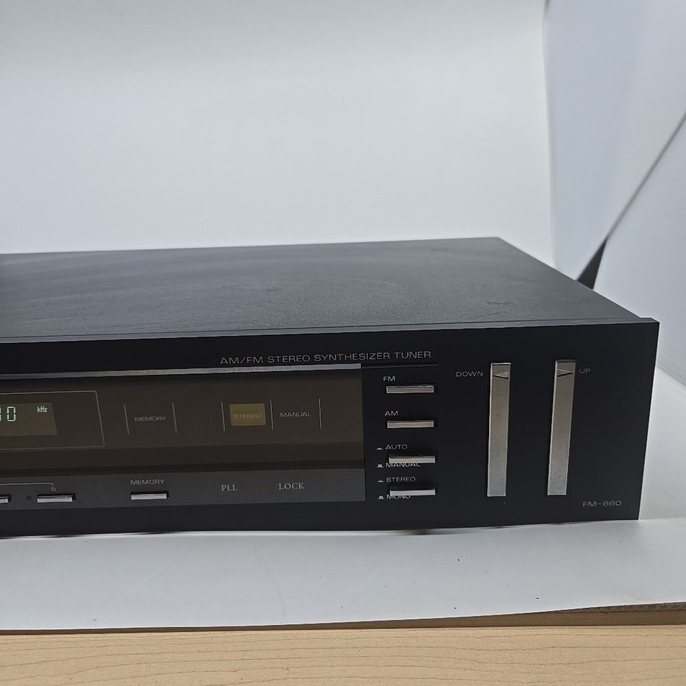 Studio Standard by Fisher FM-660 AM/FM Stereo Synthesized Tuner. Condition is Used. Shipped with USPS Ground Advantage.