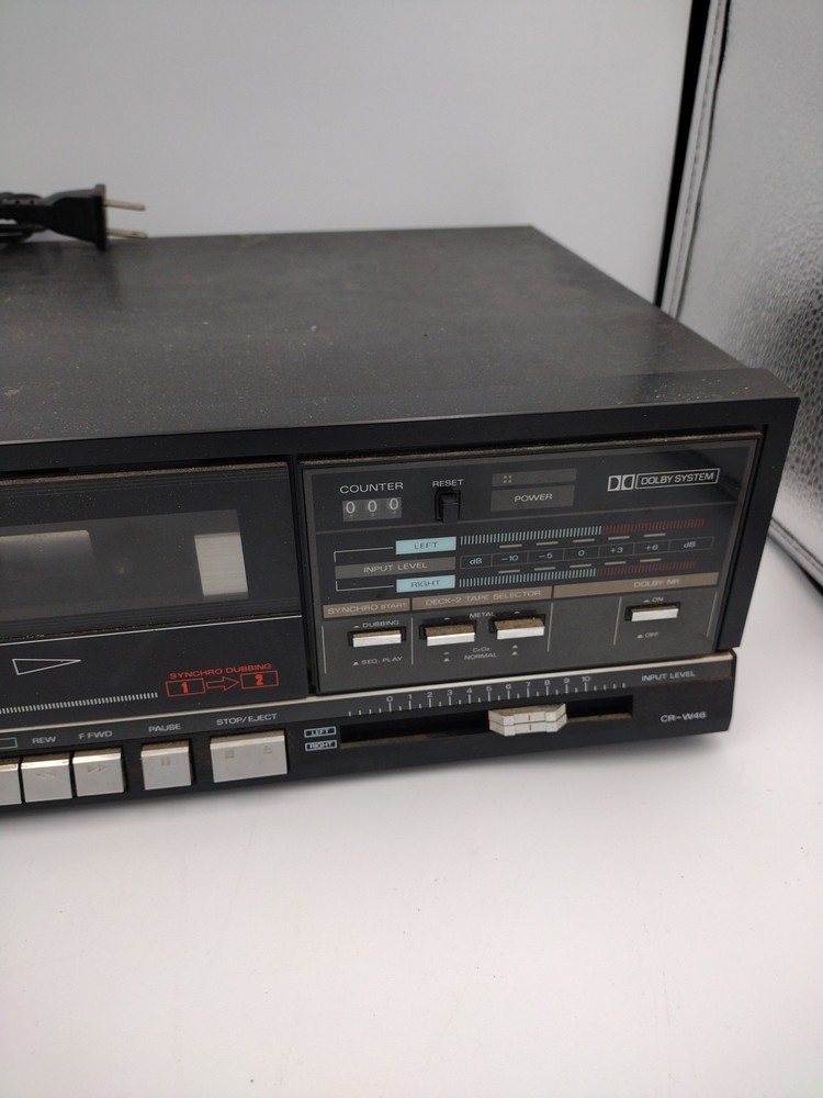 This vintage Fisher Stereo Double Cassette Deck, model CR-W46 is a great addition to any collector's audio equipment. Made in Japan, this unit has been carefully crafted to provide high-quality sound for your listening pleasure. The unit has been tested and is in working order, ready for you to enjoy. The deck features a sleek design and comes from the trusted brand Fisher. This unit type is perfect for those who appreciate vintage audio and video equipment. Don't miss out on the chance to own this rare piece of audio history.