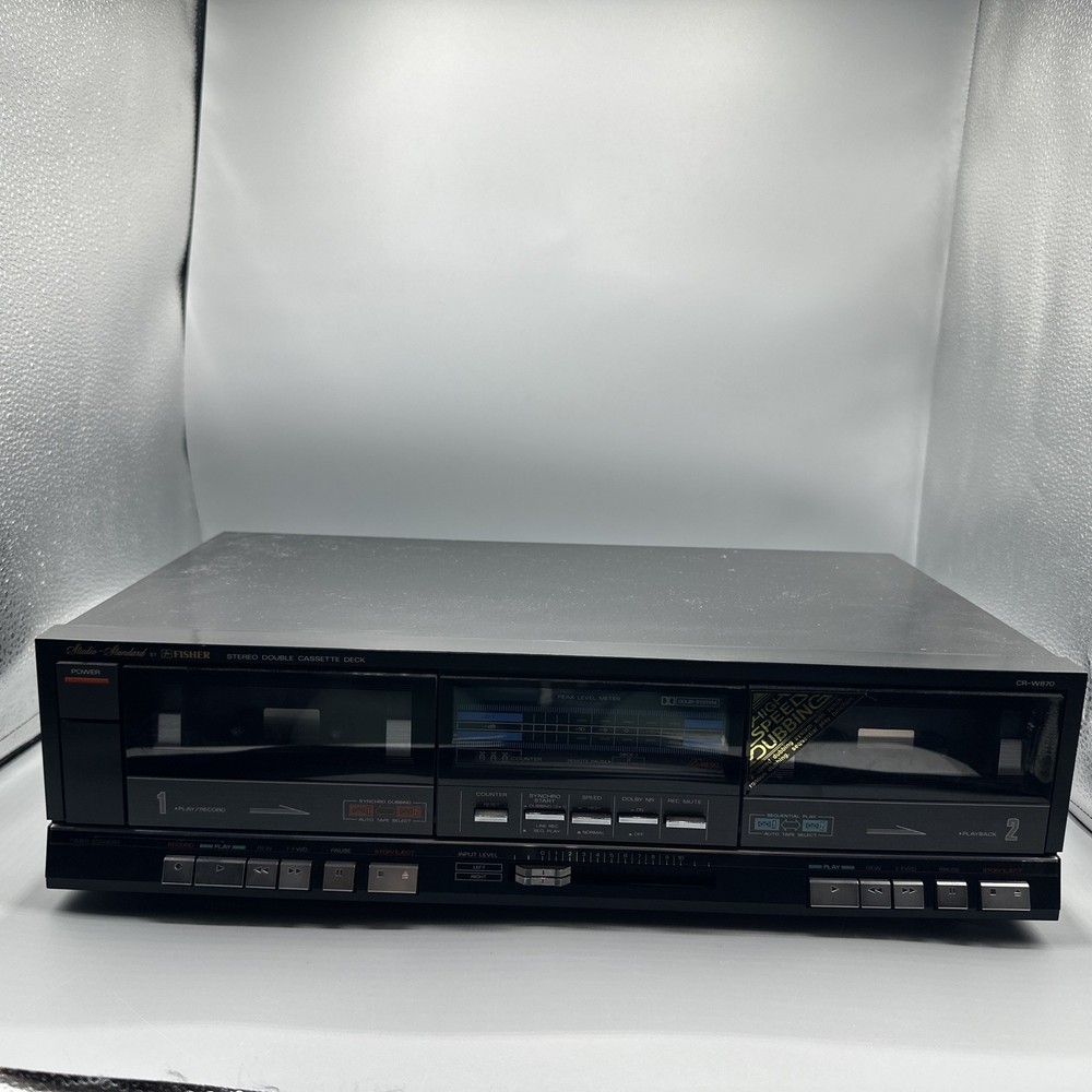 Embrace the charm of vintage audio with the Studio-Standard by Fisher Stereo Double Cassette Deck, model CR-W862. Crafted in Japan, this classic piece promises a nostalgic listen to your cherished mixtapes and vinyl recordings. Its robust design and user-friendly interface make it a timeless addition to your audio collection. The CR-W862 is a true representation of Fisher's commitment to quality, without the embellishments of modern modifications or bundles. It stands as a testament to the era when cassette decks reigned supreme, offering a pure, analog sound that many audiophiles still treasure today.