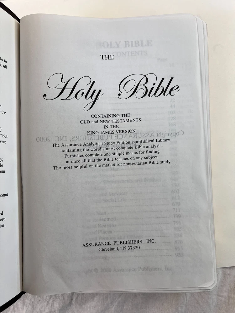 Description Subject Bible Complete Topical Study Reference Edition KJV 2000 Assurance Publishing Like New -- Beautiful Payment Payment is expected within 48 hours of auction close. If payment is not received within that time, the item may be relisted. Shipping We ship within three business days after receipt of payment via USPS and UPS. Terms of Sale Every effort is made to accurately describe merchandise, including even the most minor flaws or wear due to age. Most of what I sell is vintage and many times will show normal wear due to age and use. I am not an expert, but do my best to describe items honestly and to the best of my knowledge. I strive to have your purchase not only meet, but exceed your expectations. Be sure to check my positive feedback rating. If you have any doubts or reservations, please ask questions before bidding. Your complete satisfaction is my goal. If I fail to achieve this, please contact me. Thanks for looking and bid with confidence! About Us Most of the items that I sell come from estate sales, thrift stores, or public auctions. Please do not assume that I am an expert on the items I sell or that I know what to put in my descriptions. I do my best to describe the items, and I strive to point out any known defects. I do not clean or repair my items, but I will mention if they were tested or not. My items are sold "as is" and "as found". All sales are final unless my description is grossly misrepresented.