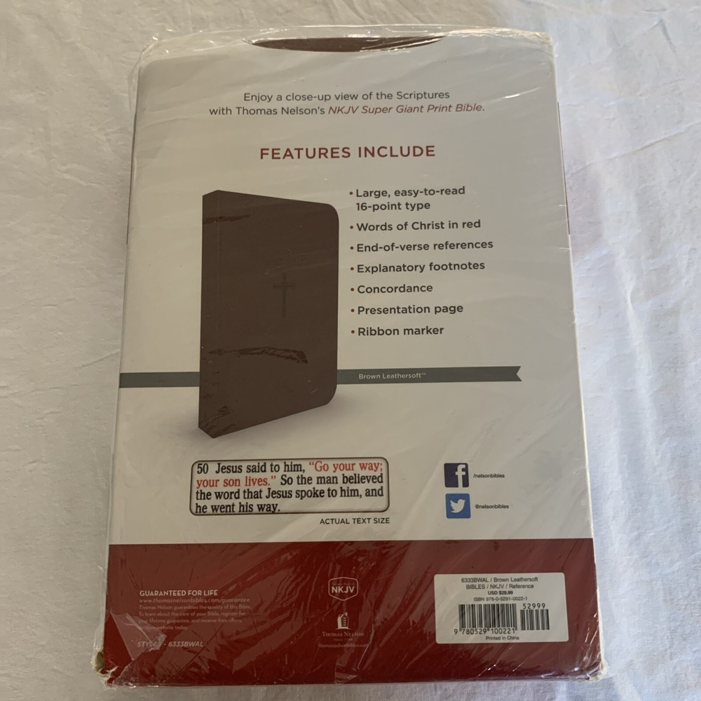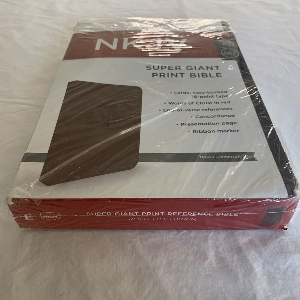Thank you for viewing my item. Feel free to ask questions prior to purchase. Please review all photos for further book condition. The "Super Giant Print Bible NKJV Imitation Leather" is a special edition historical book published by HarperCollins. It is a nonfiction narrative in English with the largest print size of 16 points, making it suitable for young adults, ages 9-12, and adults. The book is formatted in leathersoft with faux leather binding and comes shrink-wrapped. It is focused on spirituality, religious beliefs, and the history of the Bible.