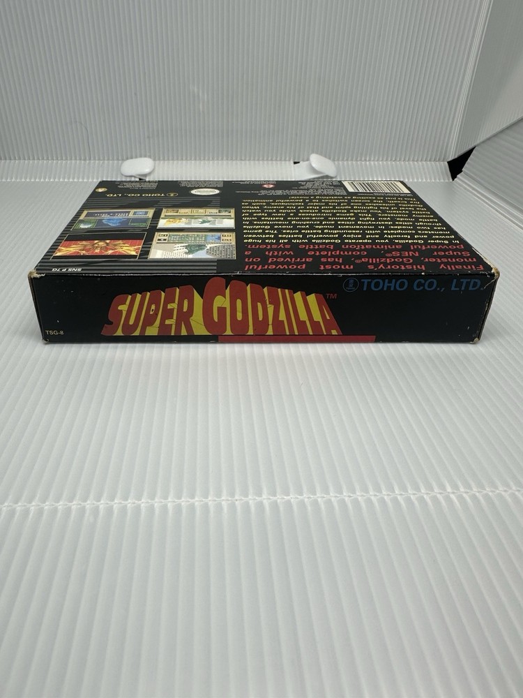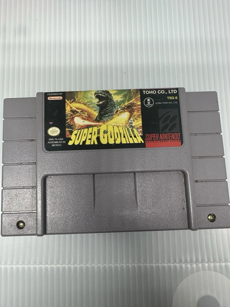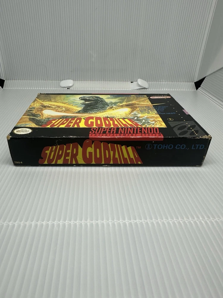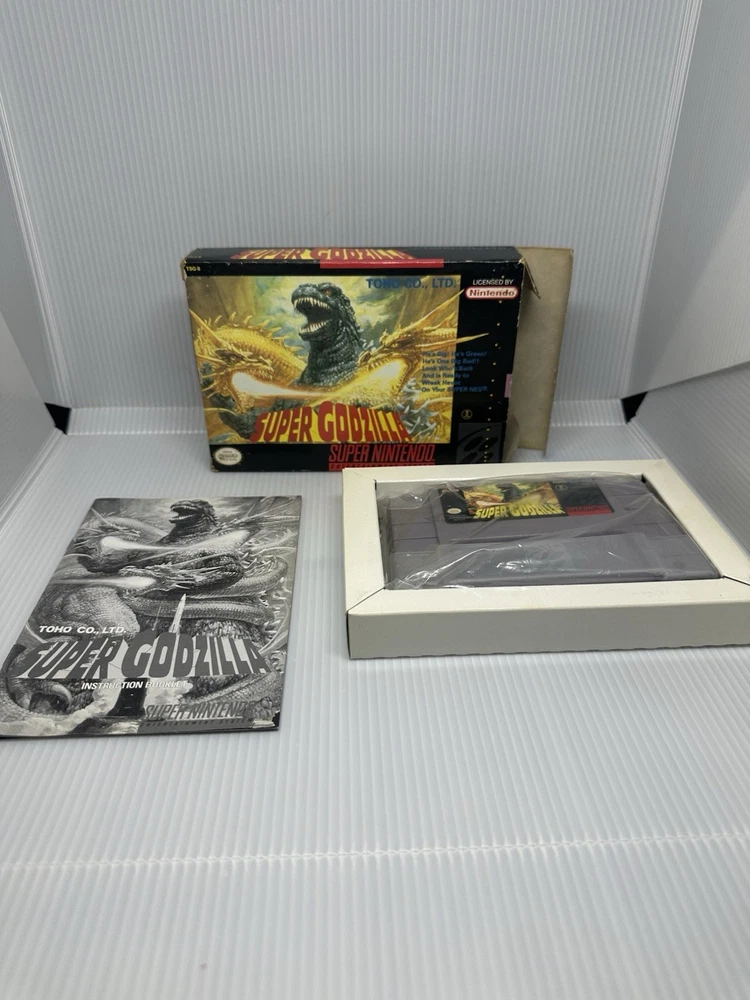 Unleash your gaming prowess with "Super Godzilla" for the Super Nintendo Entertainment System (SNES). Originally released in 1993, this classic fighting game delivers a blend of action and strategy that gamers of all ages can enjoy. Rated E for Everyone, it's a title that's suitable for all who seek to challenge their reflexes and tactical skills. The game comes complete in box (CIB), ensuring that you not only get the game cartridge but also the original manual, enhancing your gaming experience. With its NTSC-U/C region code, it's ready for play in the US and Canada. Published by Nintendo Games and manufactured in Japan, this gem is a must-have for collectors and enthusiasts alike.