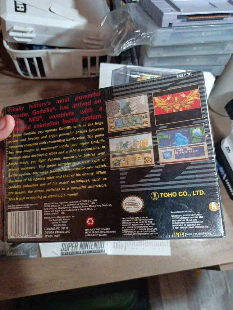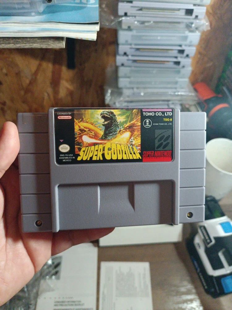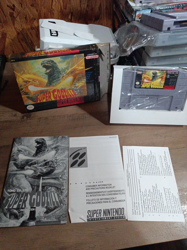 Super Godzilla for the super Nintendo entertainment system by toho really fun classic game as a true Godzilla fan it is one of my favorite things to see whenever there is a Godzilla game to be had. Game is testing working as shown in the photos above game is complete in box. This is a complete-in-box Super Godzilla game for the Super Nintendo (SNES) console. The game has been tested and works perfectly, providing hours of thrilling gameplay. It is an excellent addition to any SNES game collection. The game was developed by TOHO Co., LTD and falls under the fighting genre. Its captivating gameplay and stunning graphics make it a must-have for fans of the genre. This Super Godzilla game is specifically designed for the SNES platform and promises a unique gaming experience. Don't miss out on adding this gem to your video game collection.