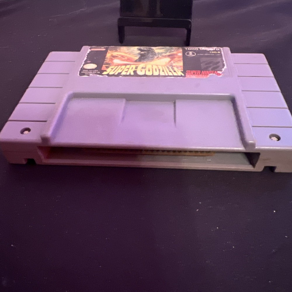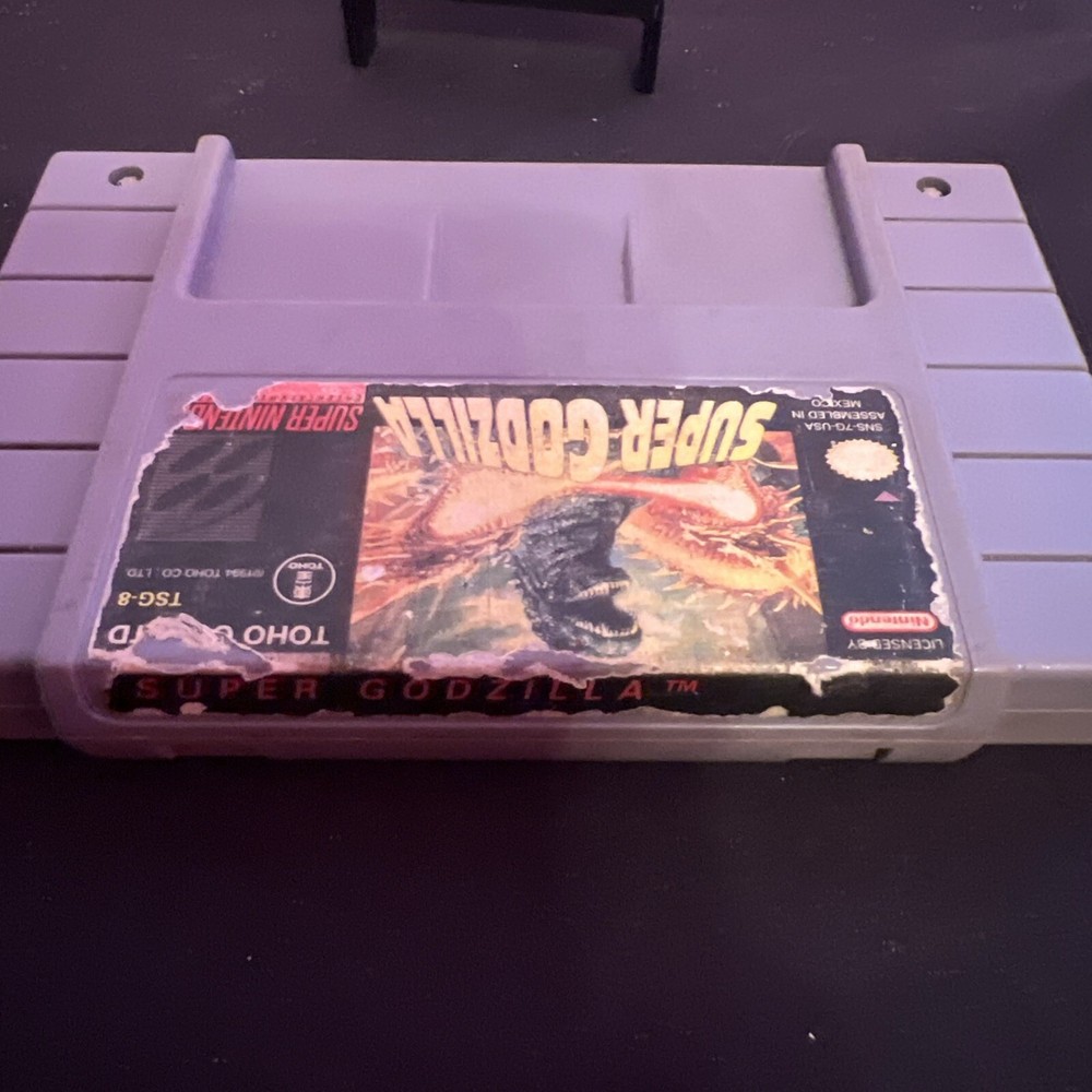 SUPER GODZILLA SNES ( GAME ONLY ) THIS IS PREOWNED BUT STILL IN GOOD CONDITION! STICKER HAS HEAVY WEAR ! THIS IS THE GAME ONLY NO BOX OR BOOKLET! ! TESTED AND WORKING! PLEASE LOOK AT ALL PICTURES AND FEEL FREE TO CONTACT ME IF YOU HAVE ANY QUESTIONS! THANKS FOR LOOKING AND PLEASE TAKE A LOOK AT MY OTHER LISTINGS! PLEASE PAY WITHIN 3 DAYS AFTER PURCHASE! I ONLY ACCEPT PAYPAL! RETURNS ARE NOT ACCEPTED SO PLEASE MAKE SURE YOU LOOK AT ALL PICTURES AND ASK QUESTIONS BEFORE YOU PURCHASE! PLEASE MAKE SURE YOUR ADDRESS IS CORRECT BEFORE YOU PURCHASE! I DO OT OFFER INTERNATIONAL SHIPPING!