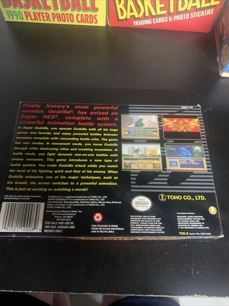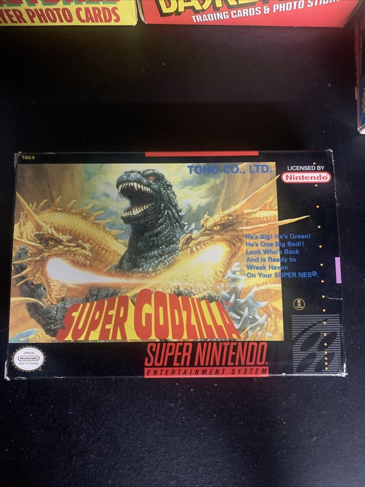Super Godzilla SUPER NINTENDO Complete With Box Game And Manual. Condition is Very Good. Shipped with USPS Ground Advantage....