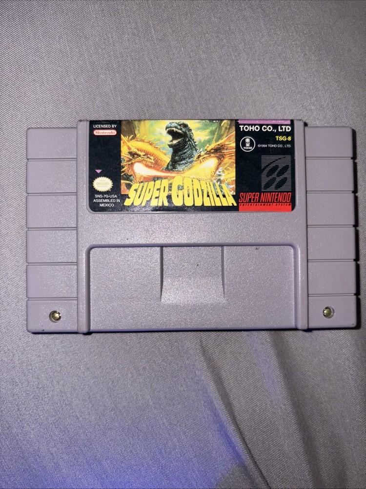 Unleash monstrous fun with "Super Godzilla" for the Super Nintendo Entertainment System. This classic 1990 release puts players in the role of the King of Monsters, offering a unique blend of action and adventure as you conquer cities and battle other iconic beasts. The game is a complete edition and has been tested to ensure an optimal gaming experience. With its family-friendly 'E for Everyone' rating, gamers of all ages can enjoy the timeless fighting excitement. Published by Nintendo and designed for the NTSC-U/C region, this game is a must-have for collectors and enthusiasts looking to relive the golden era of the SNES or to experience a piece of gaming history for the first time.