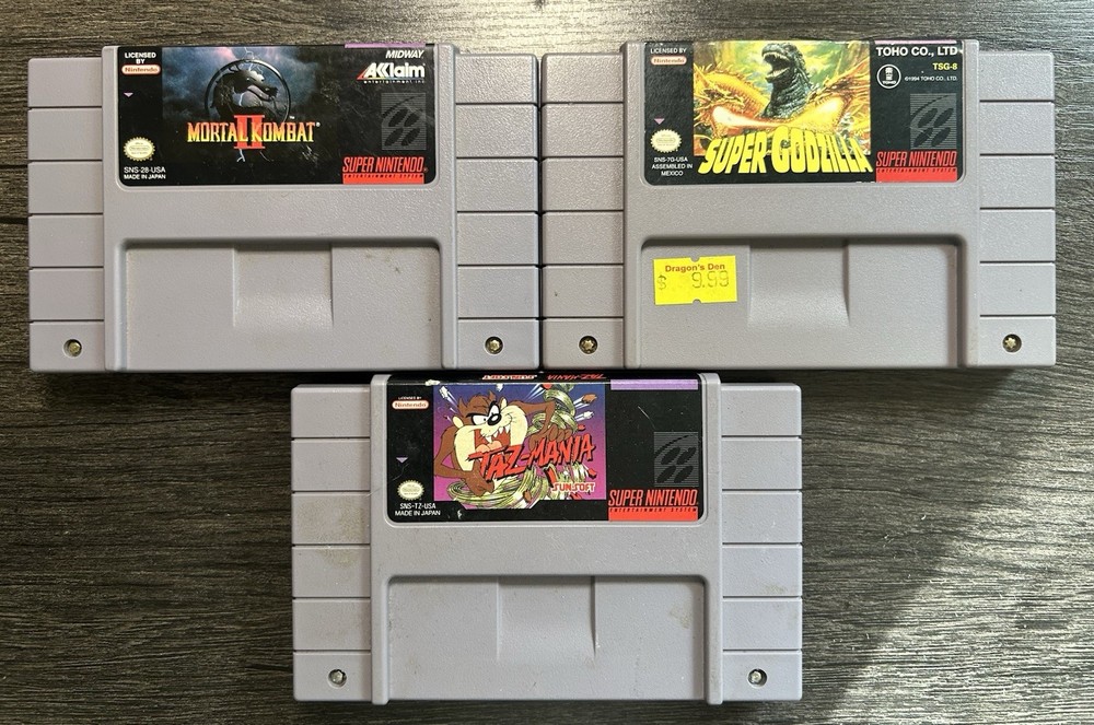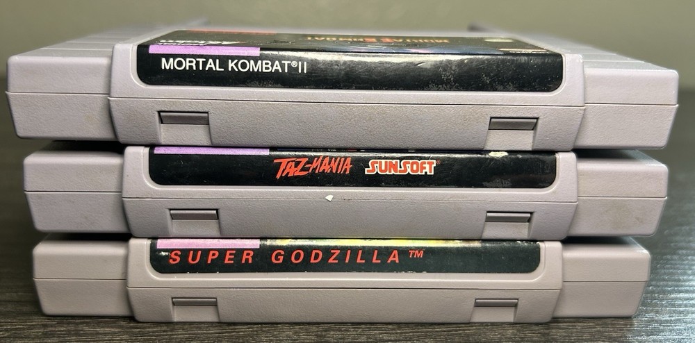 *Super Nintendo Lot Of 3* Mortal Kombat II, Super Godzilla, Taz-mania Video Games ***GAMES ARE UNTESTED AND SOLD AS IS*** Includes 3 video games: Mortal Kombat II Super Godzilla Taz – mania Please see all photos carefully for condition before purchasing, thank you!!