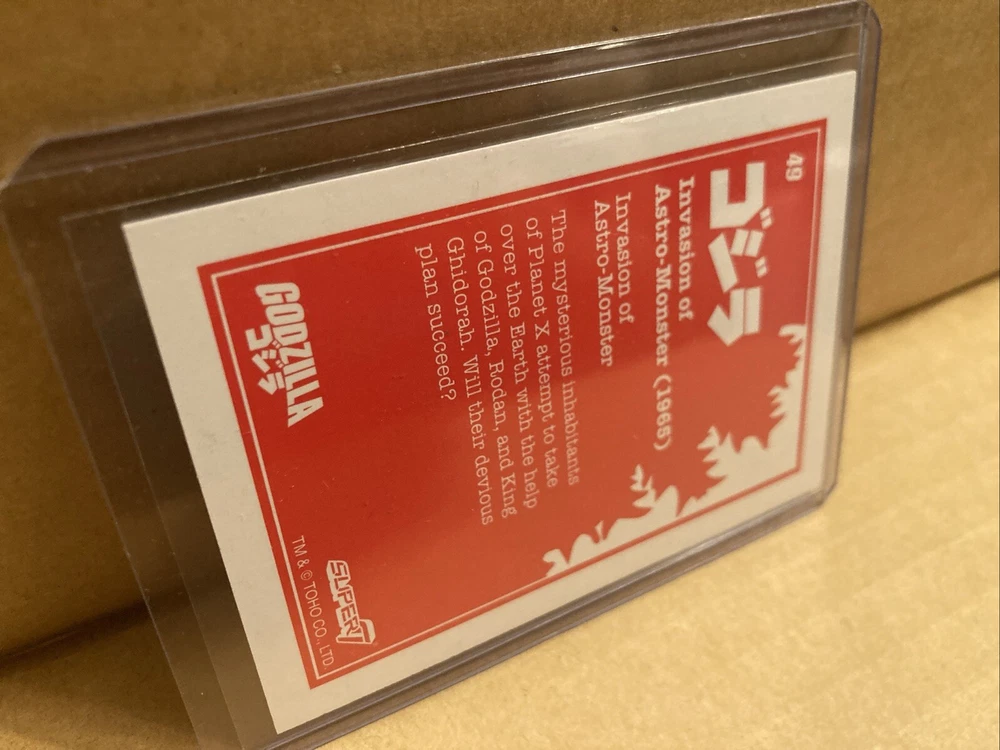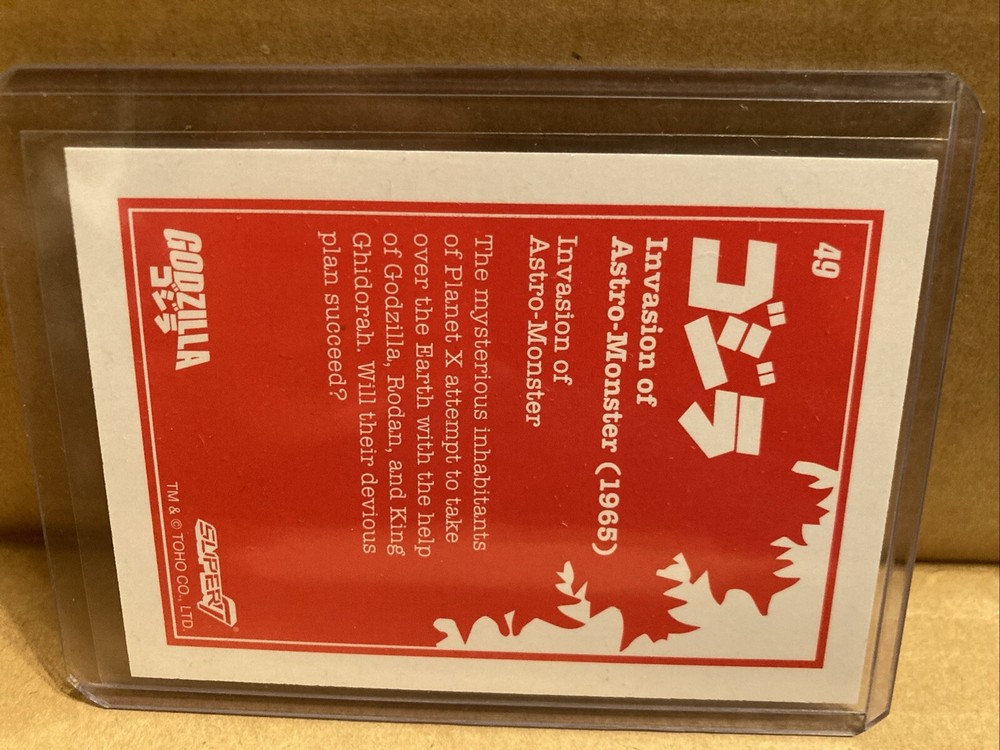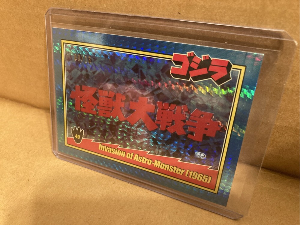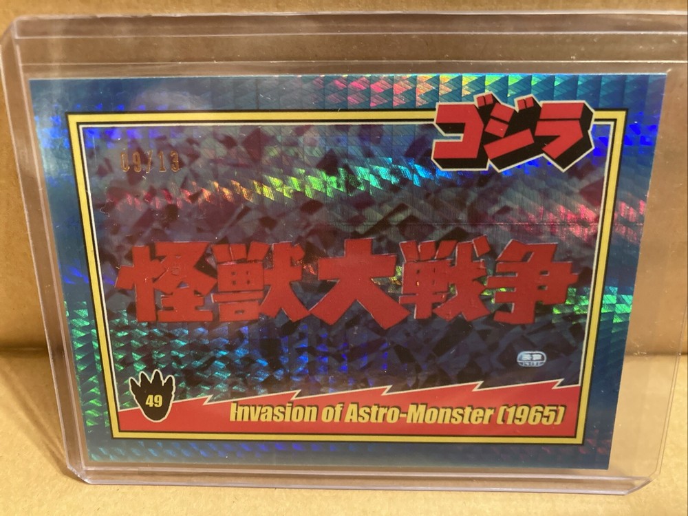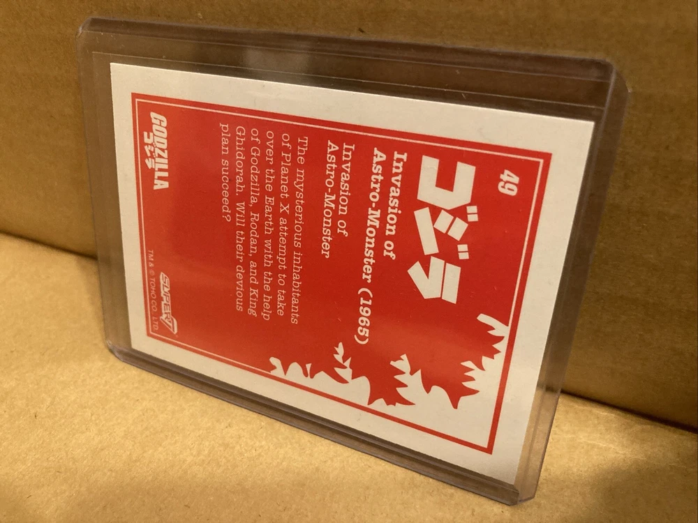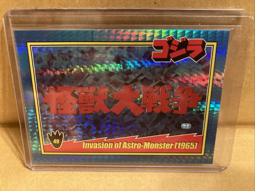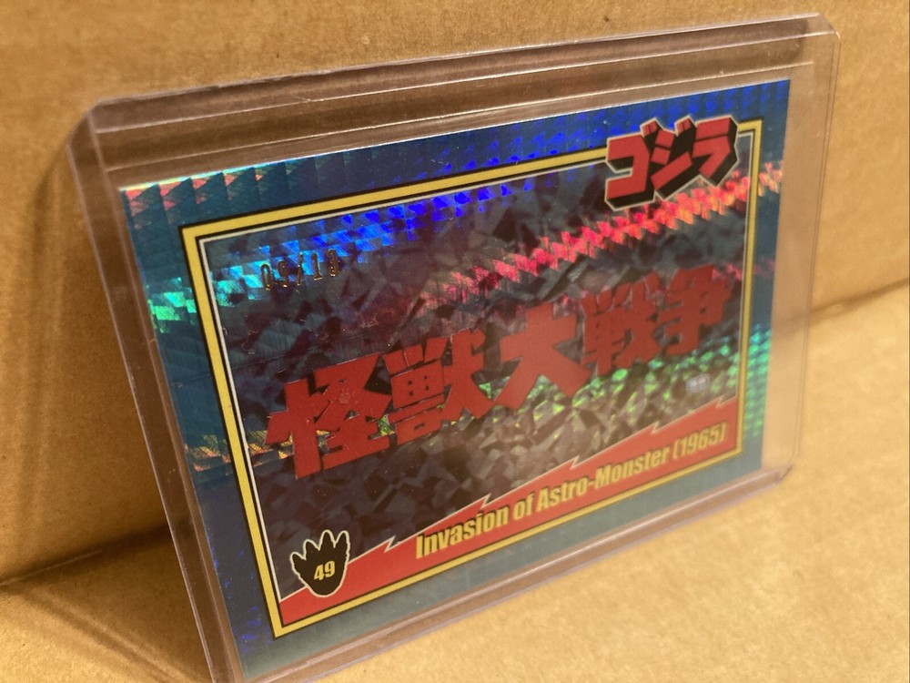 Up for sale from the 2024 Super7 Toho Godzilla trading cards release is the blue prism holofoil 9/13 of card #49 featuring the title card of Invasion of Astro Monster. Please look at the pictures, this is the item you will be receiving! It will ship with tracking from the US, I will combine shipping on any orders, thanks for looking!