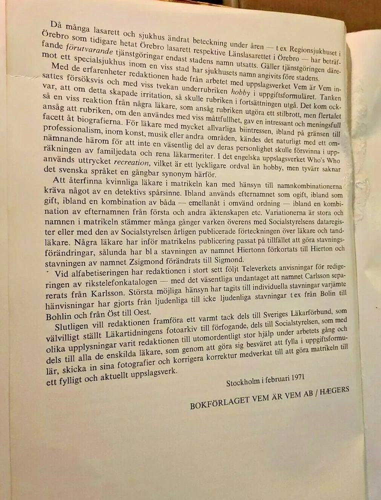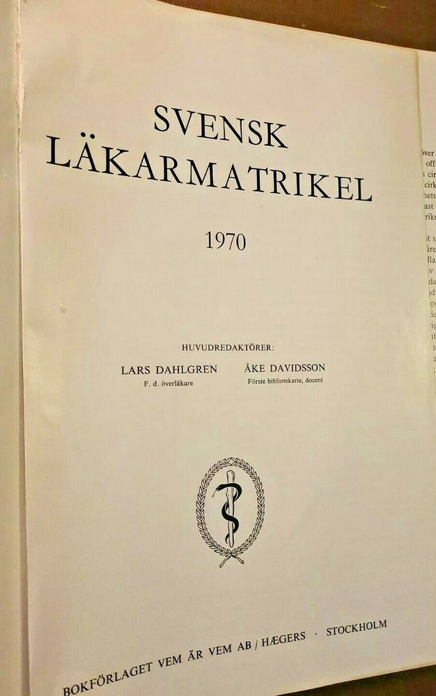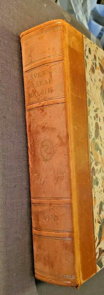 Svensk LäKarmatrikel (Swedish Medical Register) 1970 edited by Lars Dahlgreen and Ake Davidson (1970, Hardcover/Leather Bound). Marbled boards with leather spine and corners. Publisher: Bokförlaget Vem är Vem, Stockholm. Big book. Approx. dimensions are 8 1/2 inches (w) by 11 3/4 inches (h). 1007 pages. *** RARE *** Condition: Book is ACEPTABLE with moderate to notable cover/corner/edge wear. Retains attractive visual appeal. Spine lettering is strong. Binding is intact with good hinges however there is some signs of splitting/stress at at a few areas in the book in addition to some light "cracking" sound when fully opneed/stressed. That said, the binding appears to hold up well enough when handled carefully. May need repair/re-enforcement at some point in the future, especially with high usage. No missing pages and pages appear clean with generally light wear. No marks, stains or odors noted. No dust jacket (assumed as issued). Please review photos to further evaluate condition. Please ask questions BEFORE bidding/buying. SAVE ON SHIPPING !!! I will combine shipping on additional books (most books qualify) for only ONE DOLLAR for each additional book purchased. Please use the "ADD TO CART" button and then "CHECKOUT" to combine shipping. Fees should calculated automatically. NEED IT FAST. Contact me for an Expedited shipping quote BEFORE bidding/buying. Puerto Rico and other US Territories may contact me for Priority Mail shipping quote. I do not ship Media Mail to these locations.
