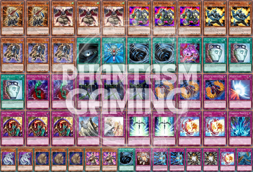 Deck Name: T.G. Stun (B) (Shockwave) # Main Deck (40) 2 - Beast King Barbaros 3 - Reborn Tengu 3 - T.G. Rush Rhino 2 - T.G. Striker 3 - T.G. Warwolf 1 - Dark Hole 1 - Monster Reborn 2 - Mystical Space Typhoon 1 - Pot of Avarice 3 - Pot of Duality 2 - Bottomless Trap Hole 3 - Fiendish Chain 3 - Horn of the Phantom Beast 1 - Mirror Force 3 - Skill Drain 1 - Solemn Judgment 1 - Solemn Warning 2 - Starlight Road 2 - TG1-EM1 1 - Torrential Tribute # Side Deck (15) 2 - Cyber Dragon 3 - Des Wombat 2 - Kycoo the Ghost Destroyer 1 - Mystical Space Typhoon 1 - Mind Crush 2 - Safe Zone 2 - Shadow-Imprisoning Mirror 1 - TG1-EM1 1 - Dust Tornado You will receive all of the following cards listed above. Most cards will will be in near mint condition. In the case of certain older cards we will do our best but some cards may be light or even moderatly played in extreme condtions. Those conditions being the card has not been reprinted in a number of years and con no longer be easily purchased in light or near mint condition. Set, Rarity, and Edition will vary and cannot be special requested. These lists are constructed with least expensive rarities we have available in stock. All cards are play legal copies. Note: If purchasing a Yugioh Deck all Speed duel cards are 100% legal at all levels of play. Store Policies Here at PMG_LLC , we pride ourselves on having the best customer service around. If you have any questions or can't seem to find something that you want please do not hesitate to contact us. We will do our best to respond to all questions within one business day. Hours of Operation: Monday-Friday: 2:30pm - 10:00pm Saturday- 10:00am - 8:00pm Sunday 11:00am - 5:30pm Note: We are closed all national holidays. Info: Thank you for choosing PMG_LLC . We appreciate your business. We ship Monday through Friday to make sure you get your deck as quickly as possible. All orders priority orders can use combined shipping. In order to use the combined shipping your whole purchase needs to be checked out as one order. We ship once we have received your payment and payment has cleared. As always if you have any questions or concerns please feel free to contact us via email. Shipping Information: We ship Monday through Friday, barring national holidays during which the United States Postal Service is closed. If you purchase a card on Friday or Saturday please bear in mind it will not ship until Monday. US Shipping: First Class Mail : Free. Comes with tracking information. Priority Mail with Delivery Confirmation : $9.99 All orders are shipped in appropriate protective material inside bubble mailers. International Shipping: We do not offer international Shipping Return Policy: You must return items sold and fulfilled by PMG_LLC within 30 days of delivery to be eligible for a refund. Returns which are damaged in the mail due to improper return packaging will receive partial refunds. We will process a full refund for all items returned in their original condition. In order for us to process your full refund you must include the full name associated with the order as well as the eBay order number inside the return packaging. We will not process returns which do not include the buyer's name and order number. Requirements: Please return items with the original plastic packaging. Failure to do so may result in a partial refund. Also you must inform us of any returns you may wish to process before sending them back. Any items simply send back to us without prior contact will not be eligible for refunds. Important Notes Remember that to benefit from our domestic combined shipping on priority orders you must to pay in a single payment. If you place two separate priority orders you will be charged the $7.50 shipping fee for both orders. If you place multiple orders for Priority shipping you will be charged the corresponding shipping costs for each order, even if you place the orders on the same day. We do not refund shipping costs as we tend to package orders throughout the day and may not notice that you would otherwise have qualified for combined shipping. We want to provide you with 5 Star service and earn your Positive Feedback, so if for any reason you are not happy with your transaction, contact us before leaving feedback. Business Day - Our business day runs from Monday to Friday from 9am to 4pm, excluding US national holidays. Any orders placed or payments cleared less than 4 hours before the close of business will be considered orders from the following business day.